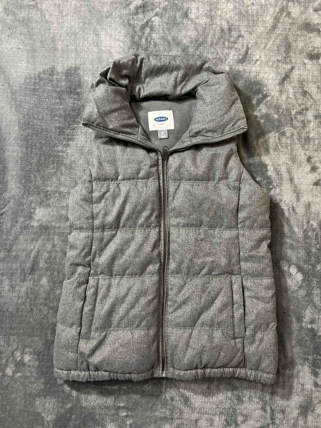 Cozy Old Navy puffer vest in a neutral grey colour! It's a size XS and in great condition. Perfect for layering on those chilly days!