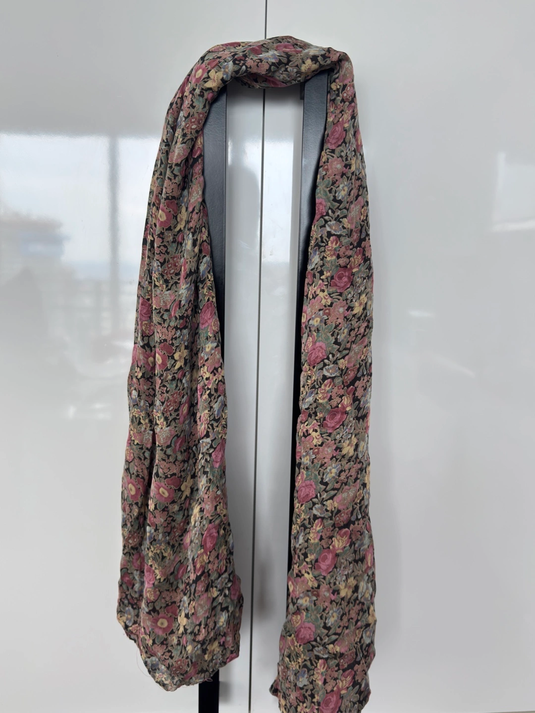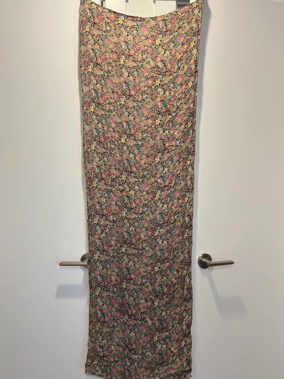 A pretty floral print scarf, perfect for adding a touch of spring to any outfit. The material is lightweight and feels great against the skin. It's in excellent condition and ready for a new home!