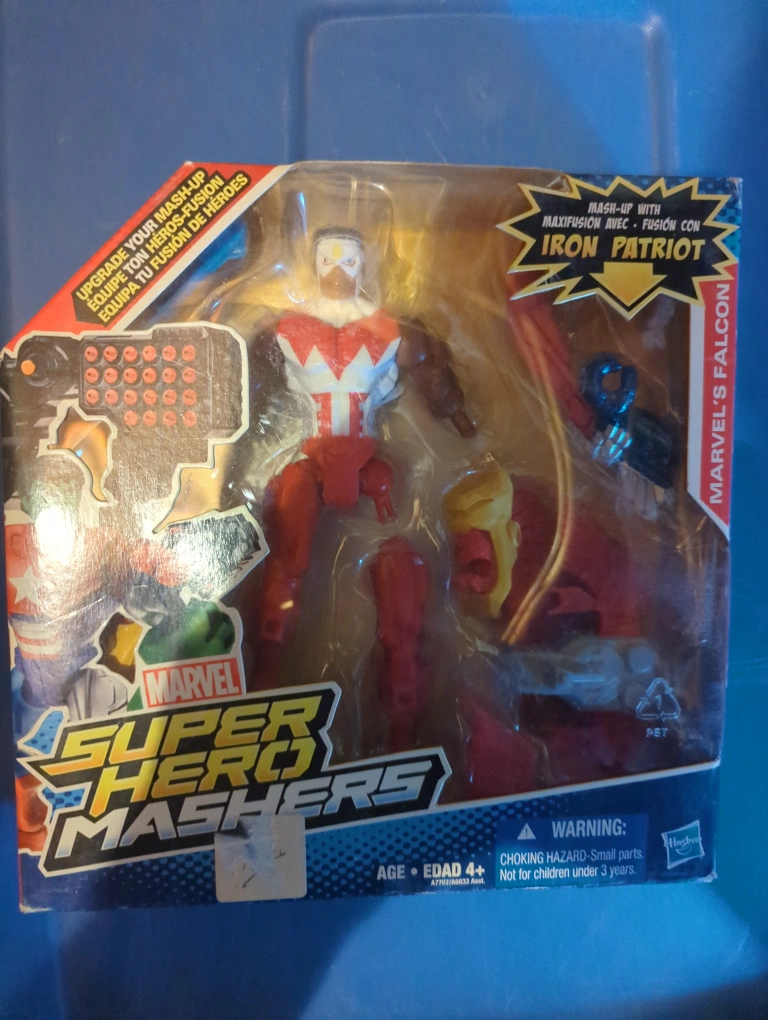 Up for grabs is a Marvel Super Hero Mashers figure featuring Iron Patriot and Marvel's Falcon! It's suitable for ages 4 and up. Comes in its original packaging