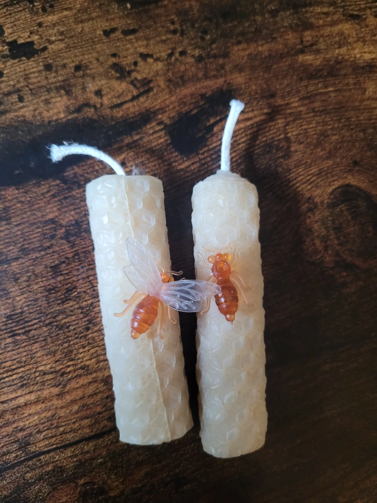 Giving away a set of handmade beeswax candles with cute little bee decorations! Never used.