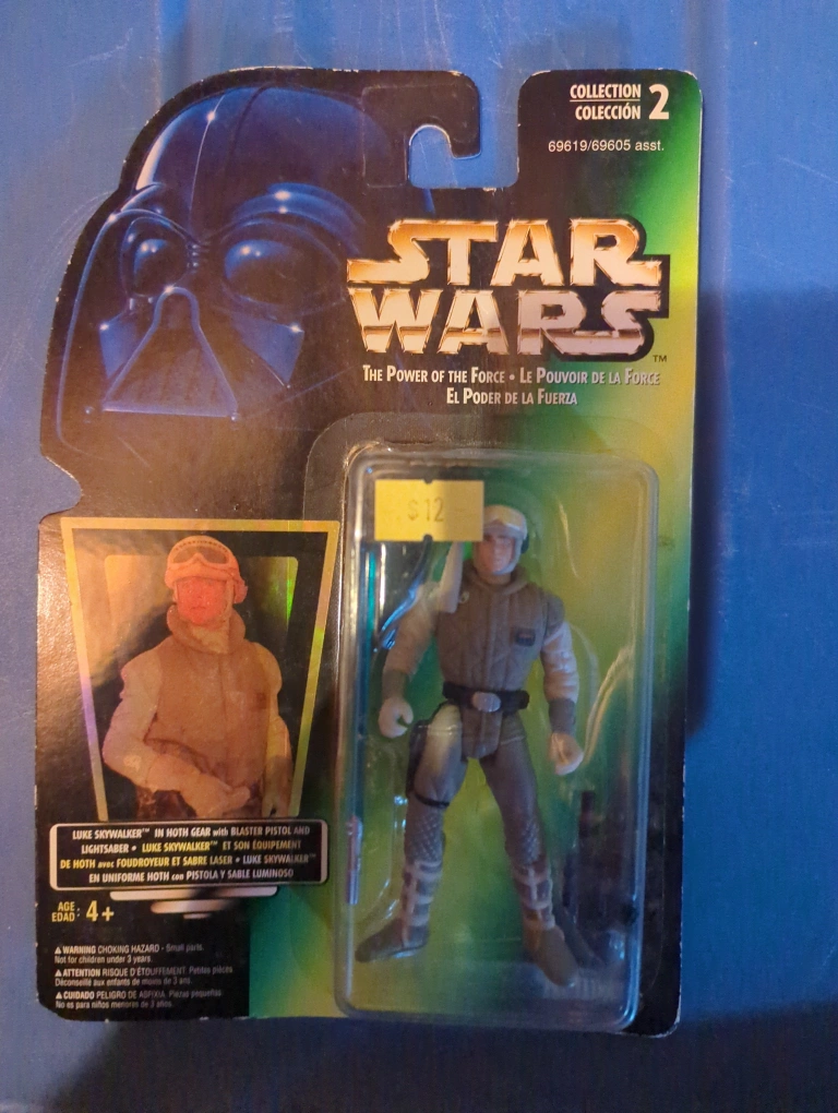 Selling a Star Wars Luke Skywalker in Hoth Gear action figure! It comes with blaster pistol and lightsaber accessories. Suitable for ages 4+
