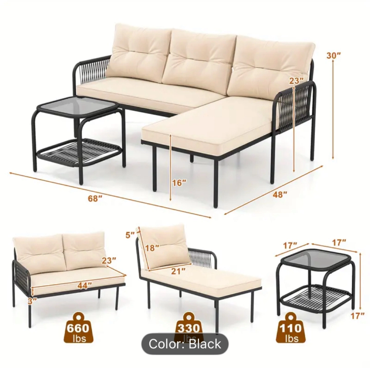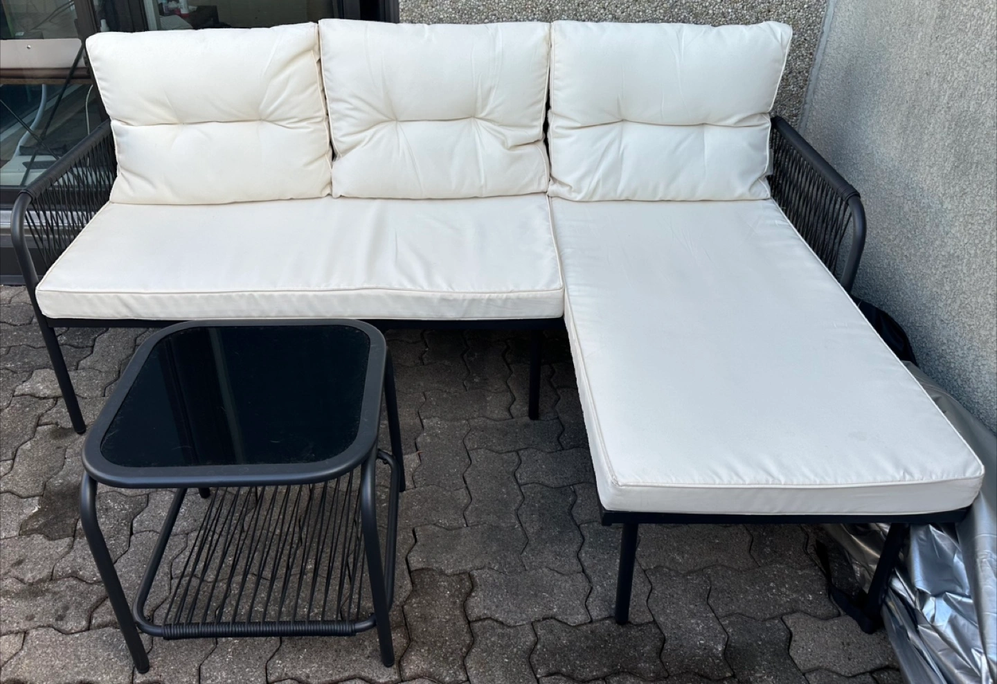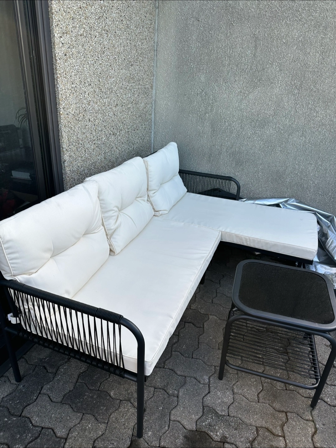Selling a lightly used patio set/sectional. Purchased this past spring but I’m moving and sadly it won’t fit at my new place. Includes small table* and a weatherproof cover which was purchased separately. Note: the table has a small manufacturer’s defect but is still fully functional. See 4th image for dimensions. Pick up near Sherbourne subway station.