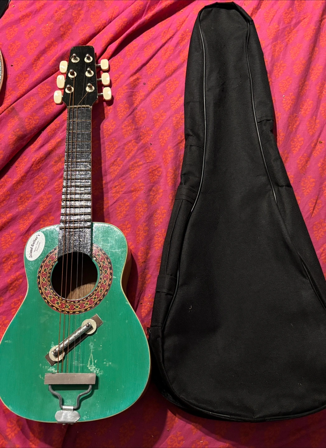 Selling a cute children's 5 strings guitar (2 feet)! It comes with a black case for easy transport and storage. Made in Philippines. Perfect for a young musician just starting out.