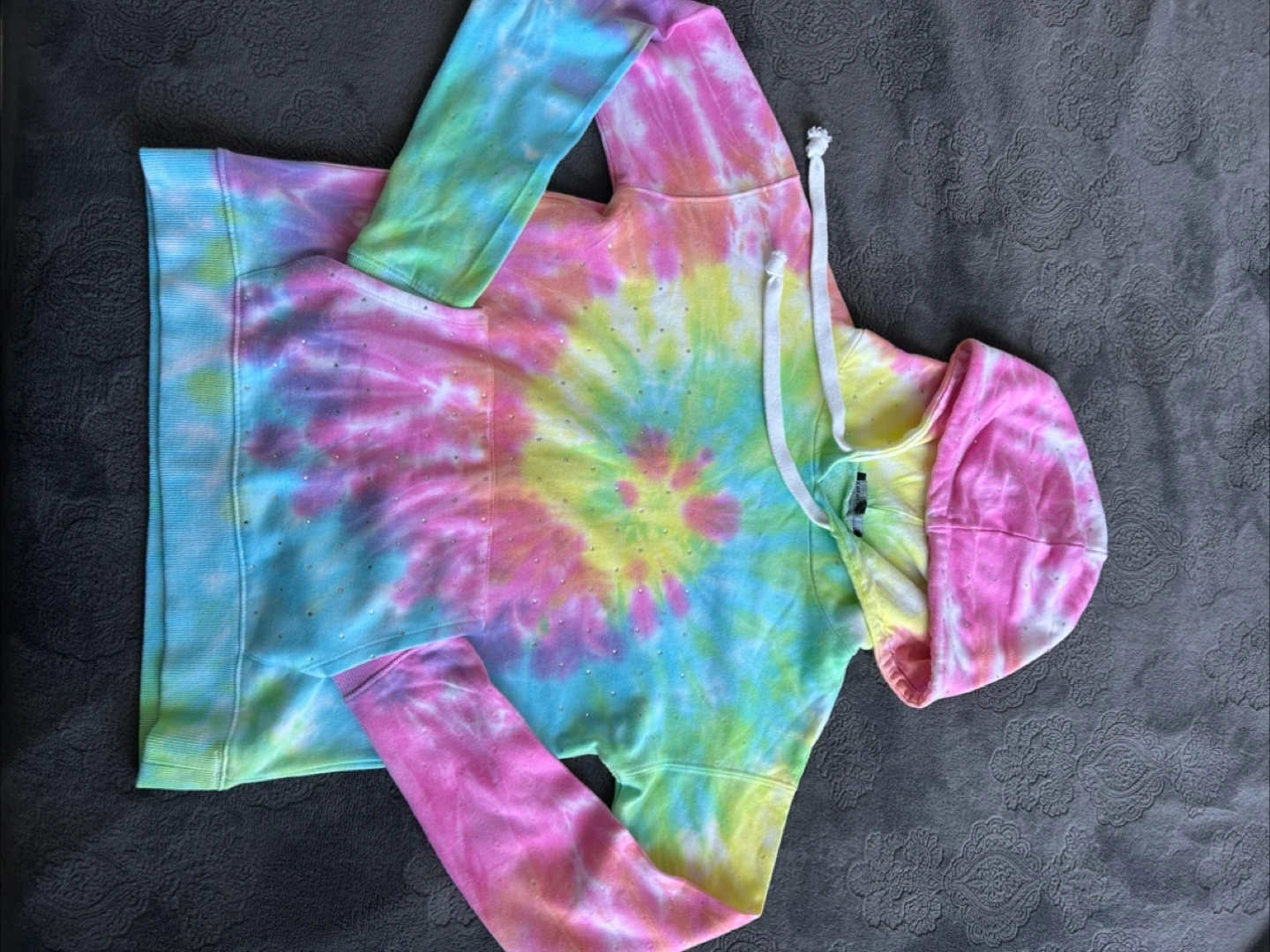 Selling a cute tie-dye hoodie from Generation Love! It's a size XS and features a fun, colourful design. Perfect for adding a pop of colour to your wardrobe!