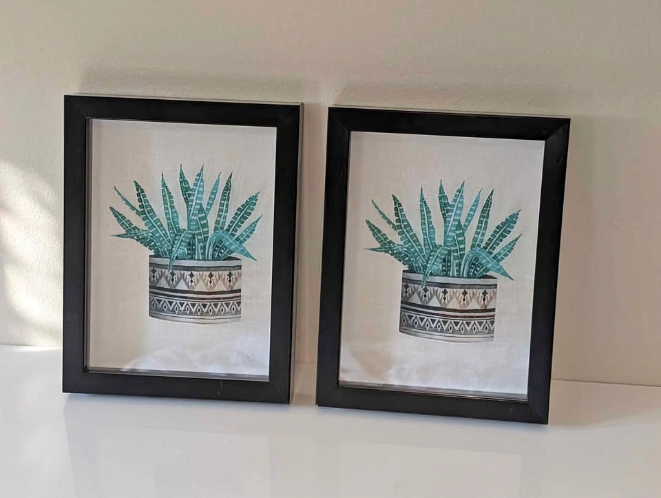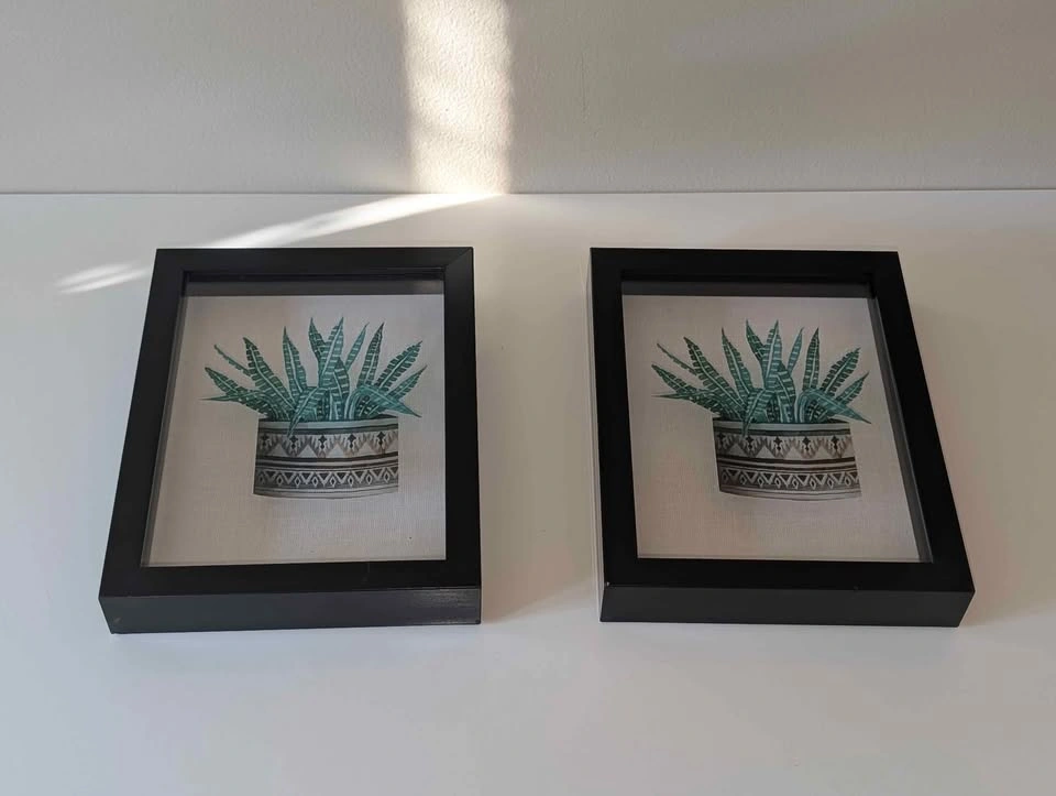 Add a touch of boho chic to your space with this set of two framed succulent prints. The vibrant green plants and sleek black frames make them perfect for any room. They're in good condition and ready to hang. 6.5" W 8.5" H Price: $8.00 Pick up in: Abbotsford, BC