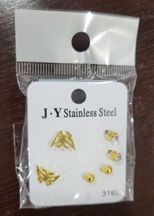 These are a brand new set of J.Y stainless steel earrings! They come in a sealed package, so they're perfect as a gift or for yourself. The set includes butterfly and ball stud earrings in gold.