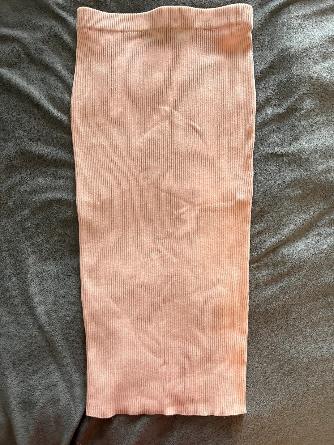 A cute and comfy pink ribbed knit skirt! It's in great condition and ready for a new home. Perfect for dressing up or down for any occasion. Size Medium. Worn once. Smoke and pet free home.