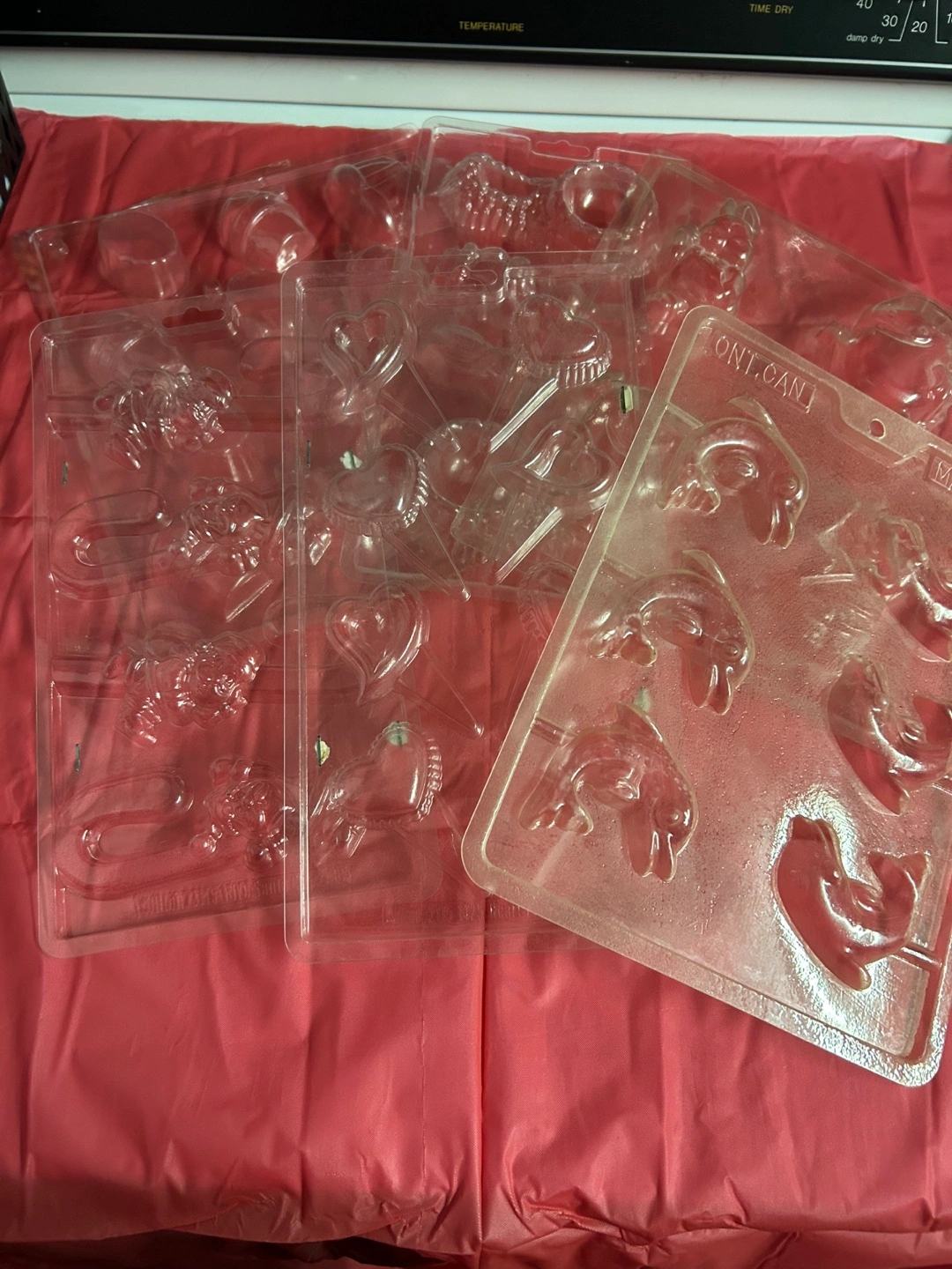 Pre loved but in excellent condition various candy molds . Christmas, valentines, Easter, dolphin and children’s characters molds . Perfect for any baker Selling all 6 as a bundle.