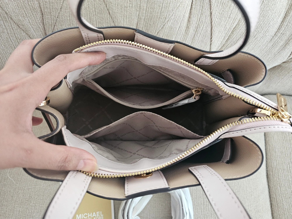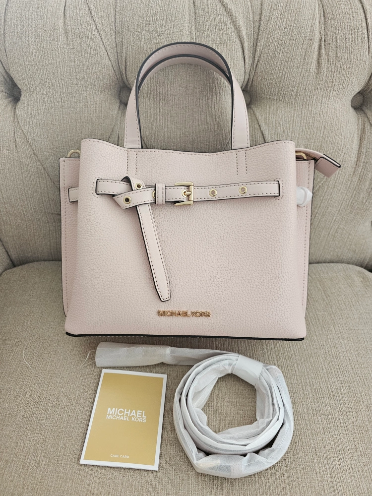 Selling a cute Michael Kors small satchel! It's Brand New and comes with the original strap and care card. Perfect for everyday use or a night out. The colour is a lovely pale pink!