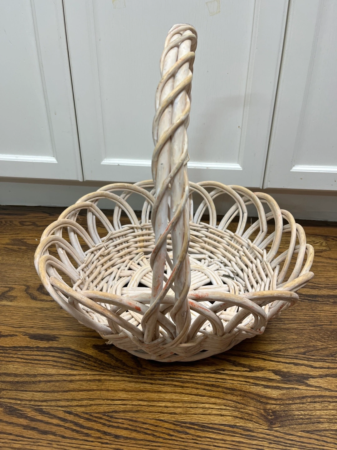 Giving away a cute wicker basket with a handle! It's perfect for storage or as a decorative piece in your home. It's in good condition and ready for a new home. 15 inches tall. 15 inches wide