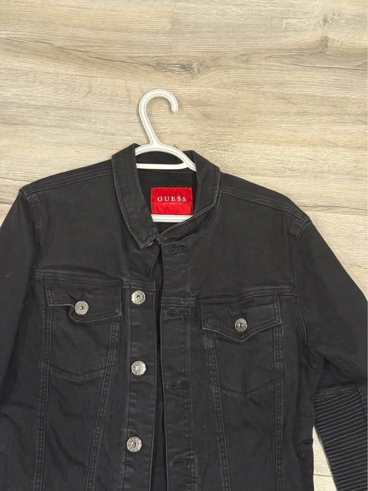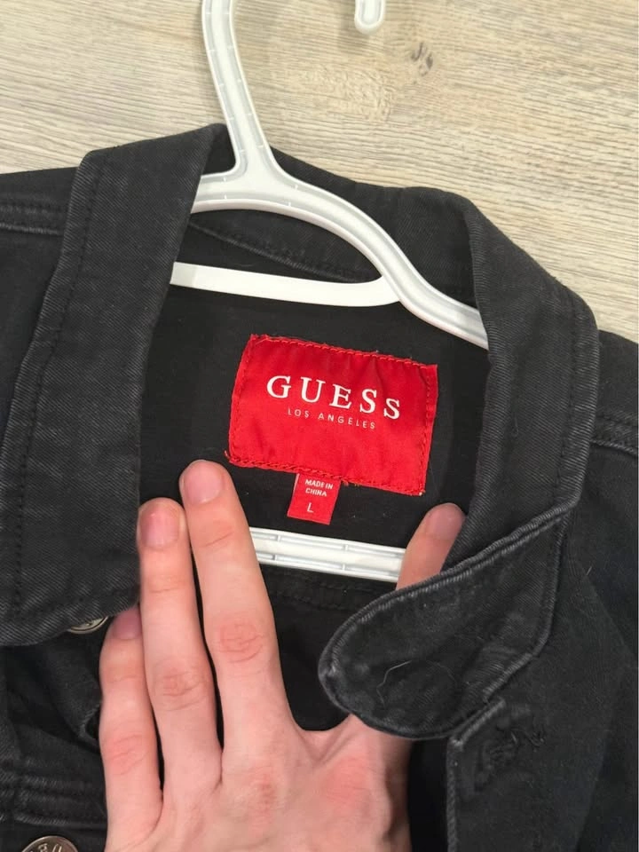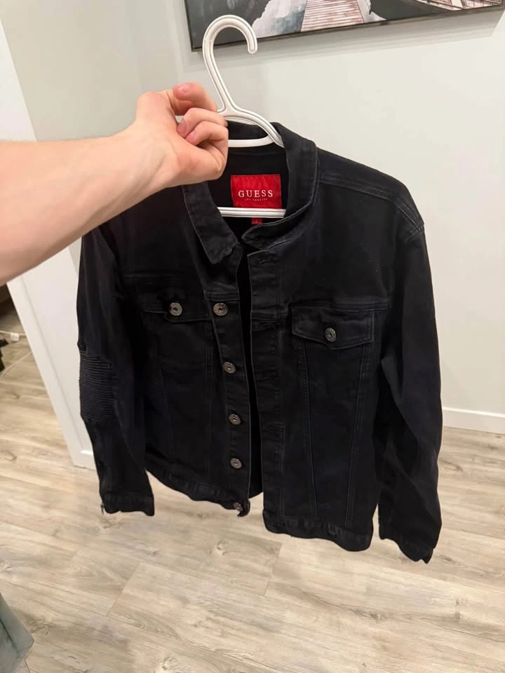 Men’s black Guess branded denim jacket. The sizing on this is large but it honestly fits more of a small / medium in my opinion as it is a little small on me. Can definitely try on before purchase :) Pick up is in hollyrood area