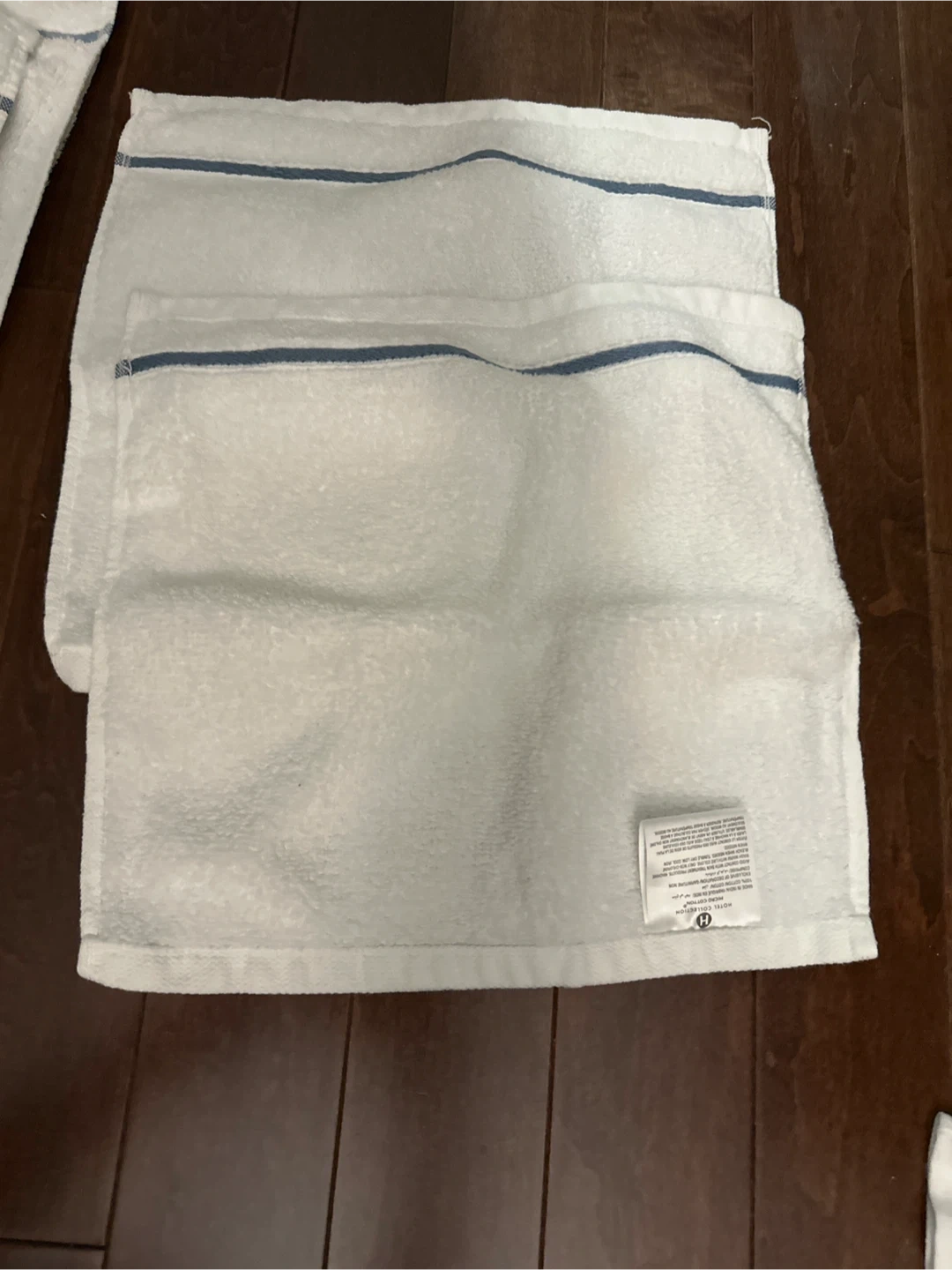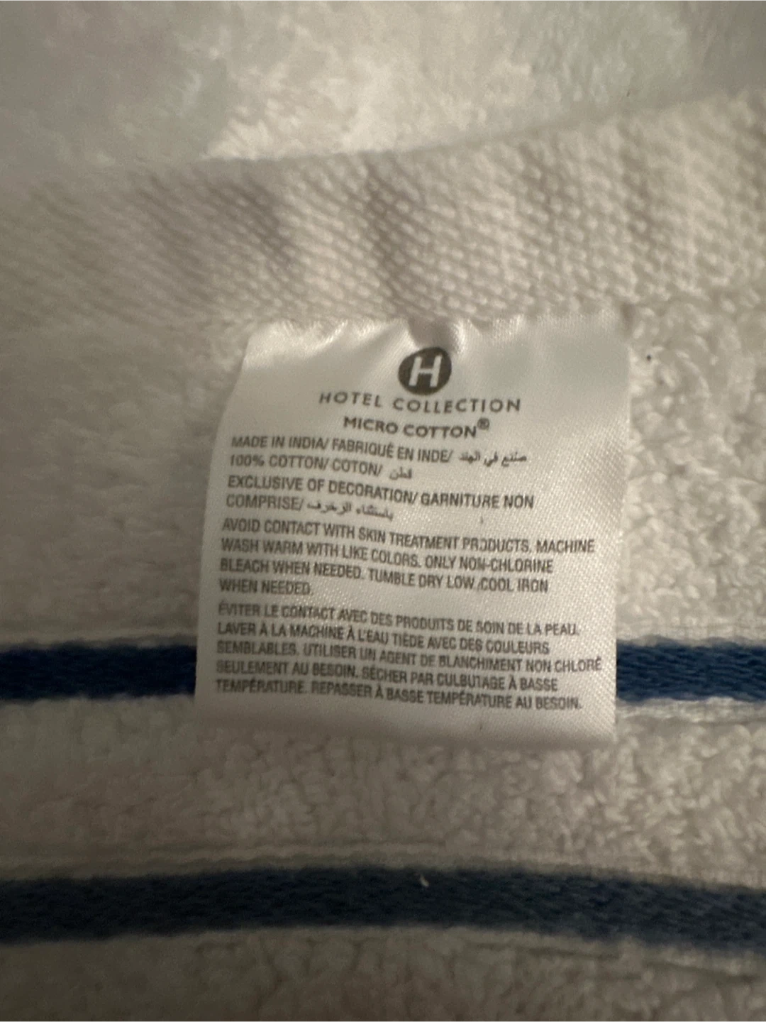 Hotel Collection towels and face cloths! White with blue stripes and made of 100% cotton