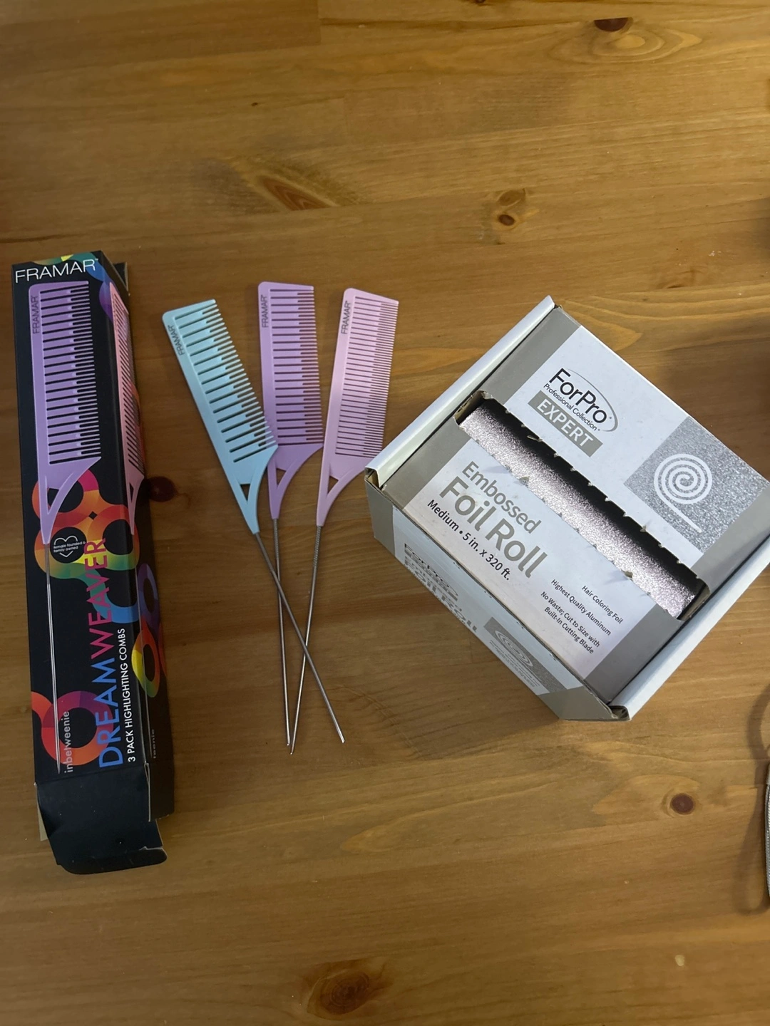 • Framar Dreamweaver Highlighting Combs (3-Pack) – precision sectioning combs for highlights and balayage (2 pink, 1 blue). • ForPro Expert Embossed Foil Roll (5 in. x 320 ft.) – professional-quality hair coloring foil with built-in cutting blade. • Condition: Opened, never used Perfect for hairstylists, students, or at-home coloring. Available for meet-up at TTC subway or pickup.