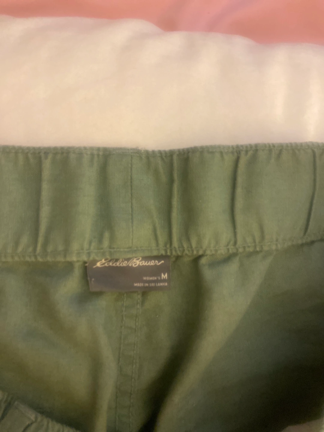 Selling a pair of Eddie Bauer women's shorts in size M. They're in great condition and ready for a new home! The shorts are a nice olive green colour.