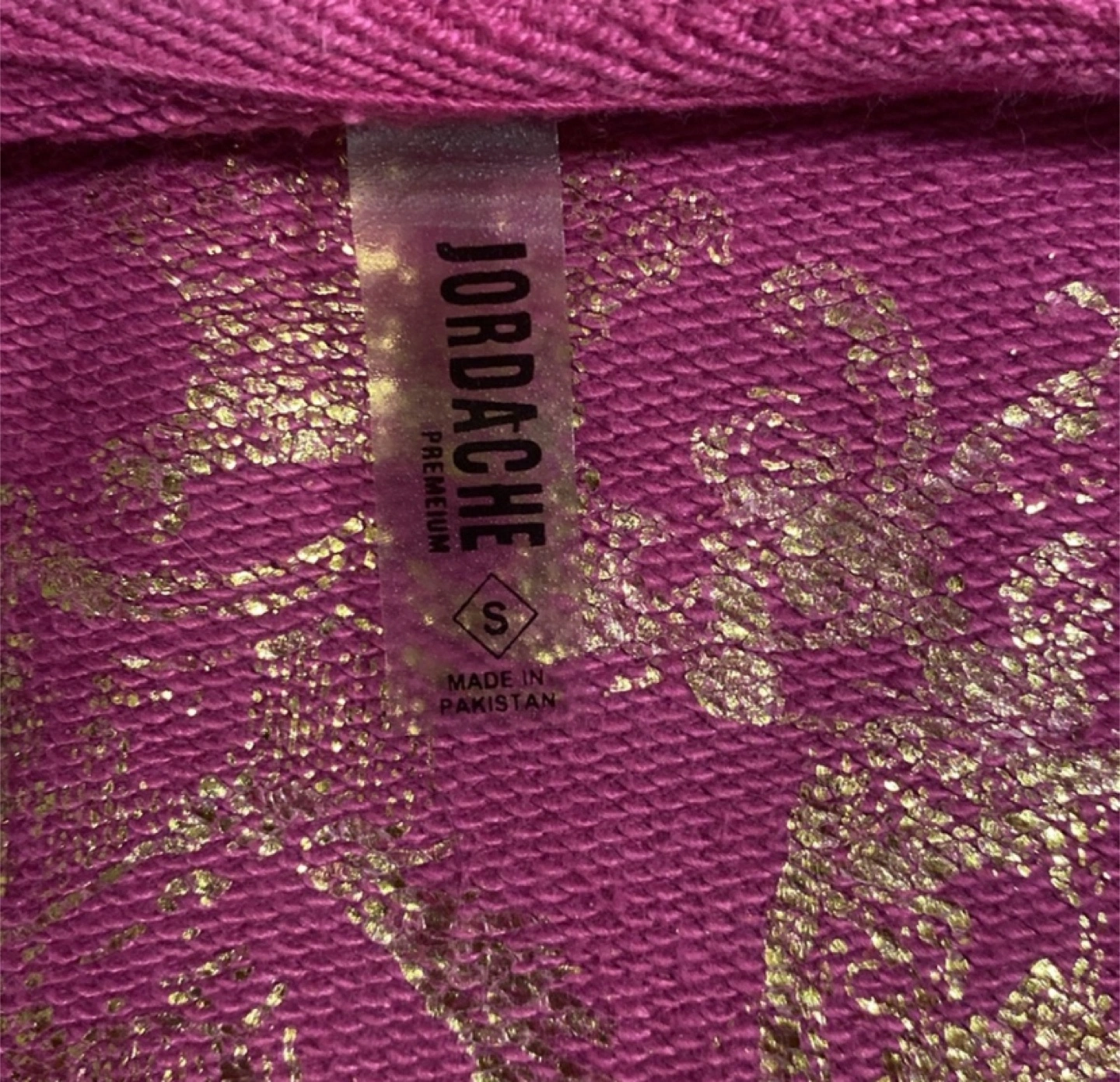 Check out this cute Jordache Premium hoodie! It's a vibrant fuchsia colour and size small. It's made of 80% cotton and 20% polyester. Perfect for layering or just lounging around