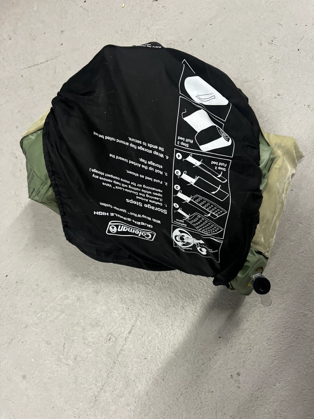 Selling a Coleman Queen Size Double-High Airbed. It comes with its original storage bag, making it easy to pack and bring on camping trips or to store at home. It's in great shape!