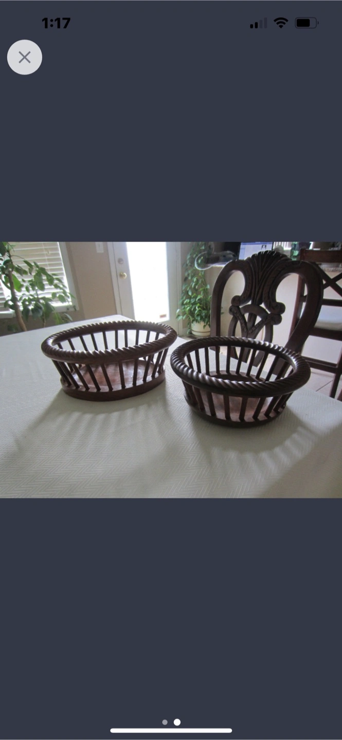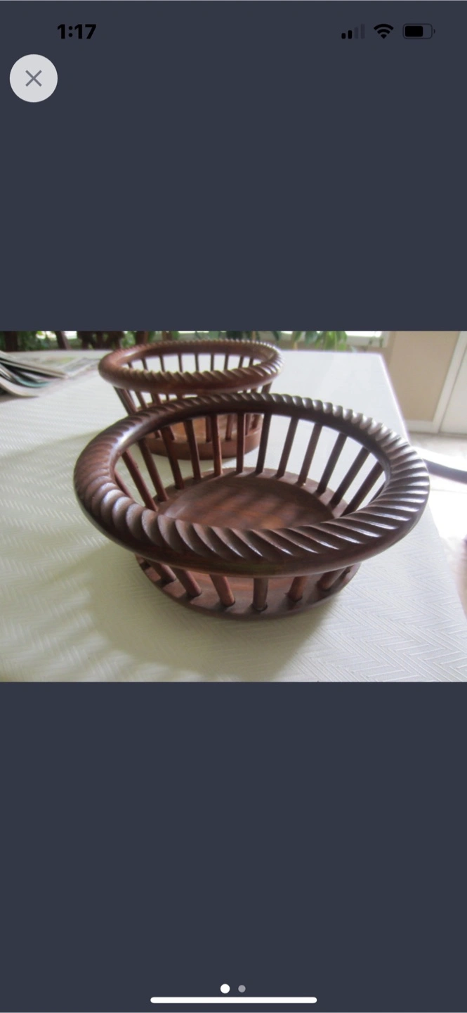 Selling wooden decorative basket. They're perfect for adding a touch of rustic charm to any room. Great for holding fruit, bread, or just as a decorative piece on a shelf or table. $10 each. More quantity available.