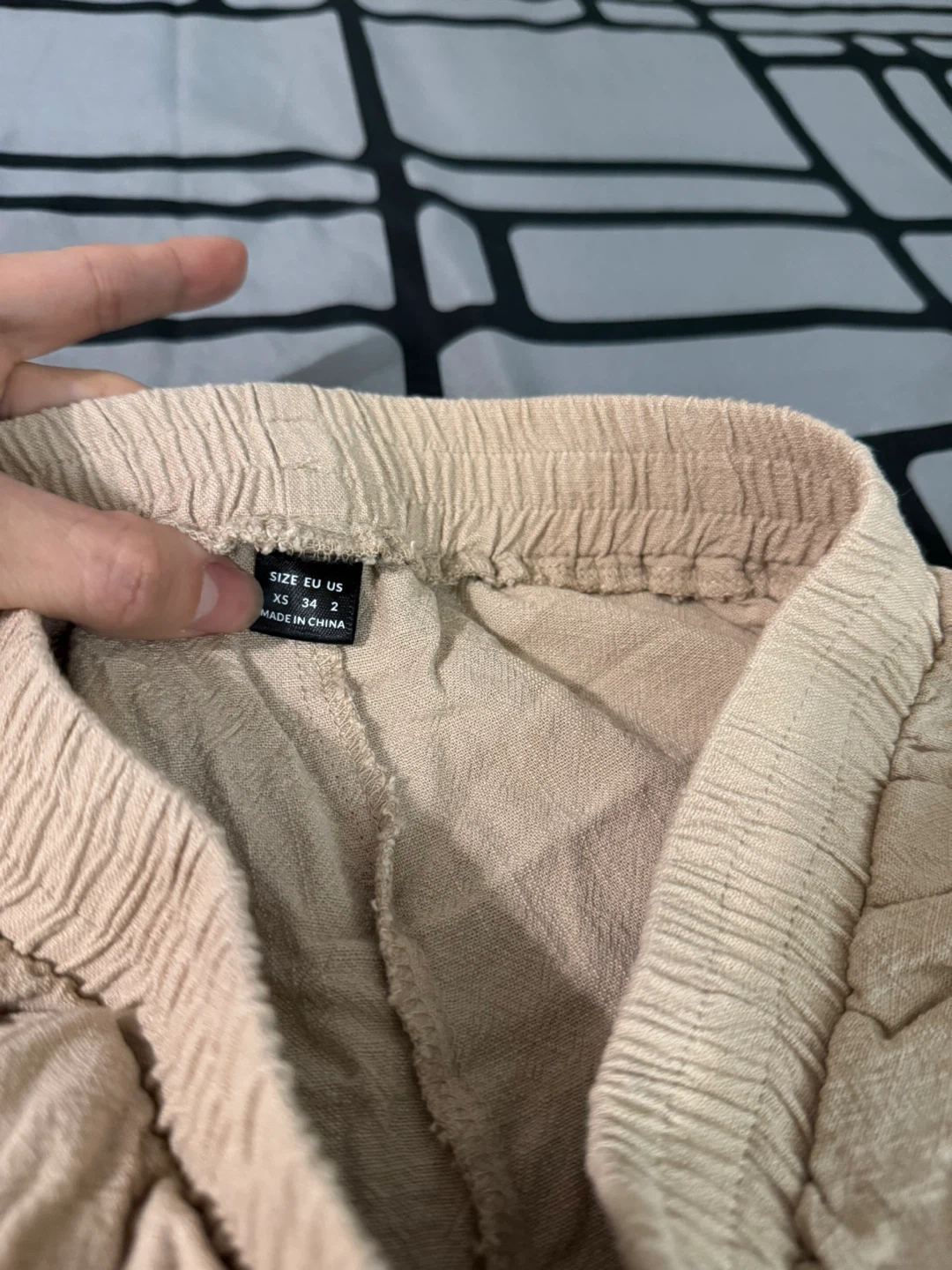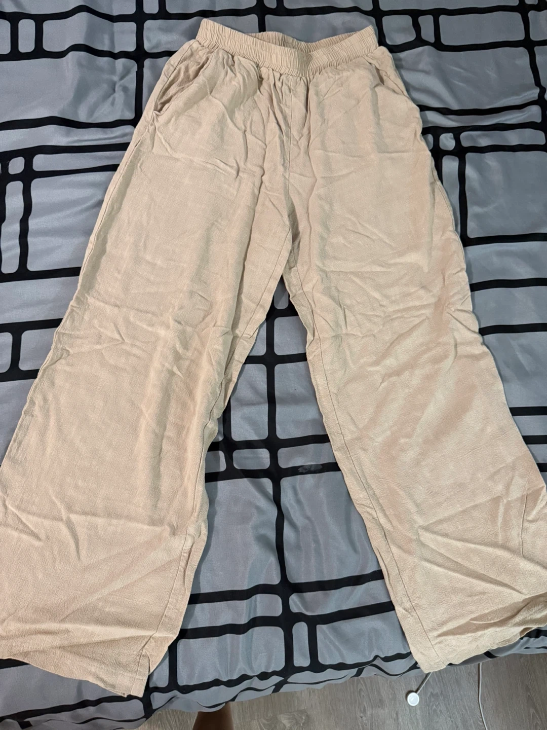 These are a pair of SHEIN EZwear wide leg pants in size XS. They're a light beige colour and have a comfortable, relaxed fit. Originally bought for $29.08
