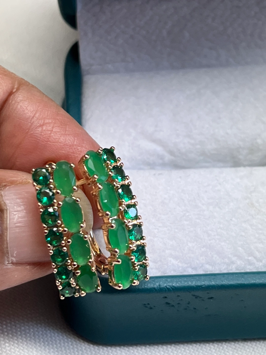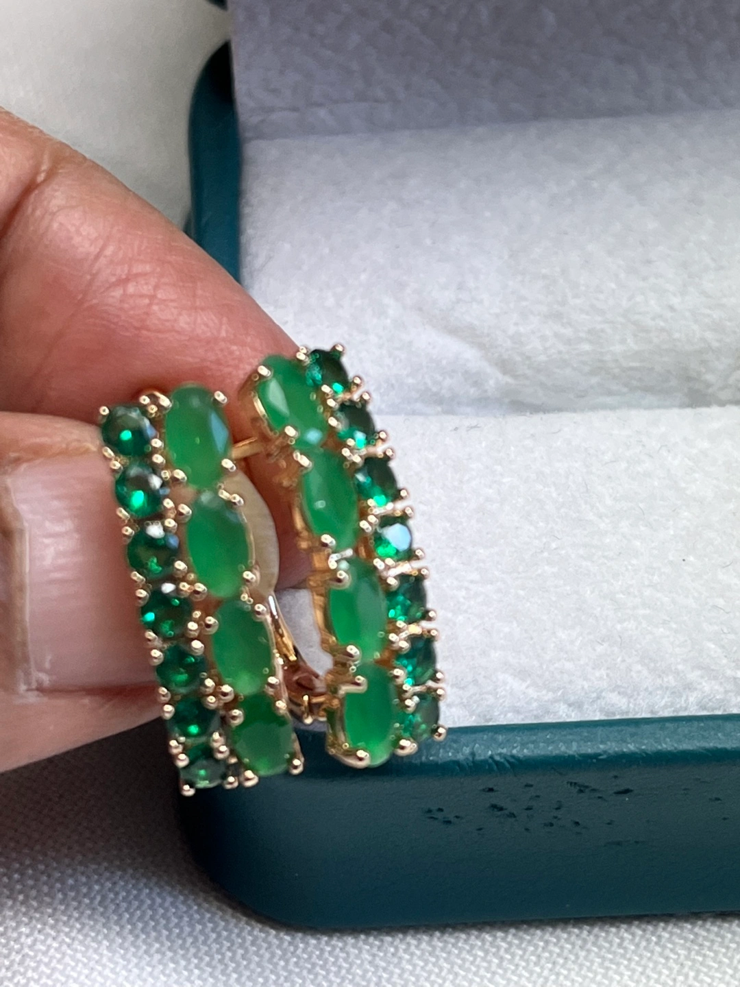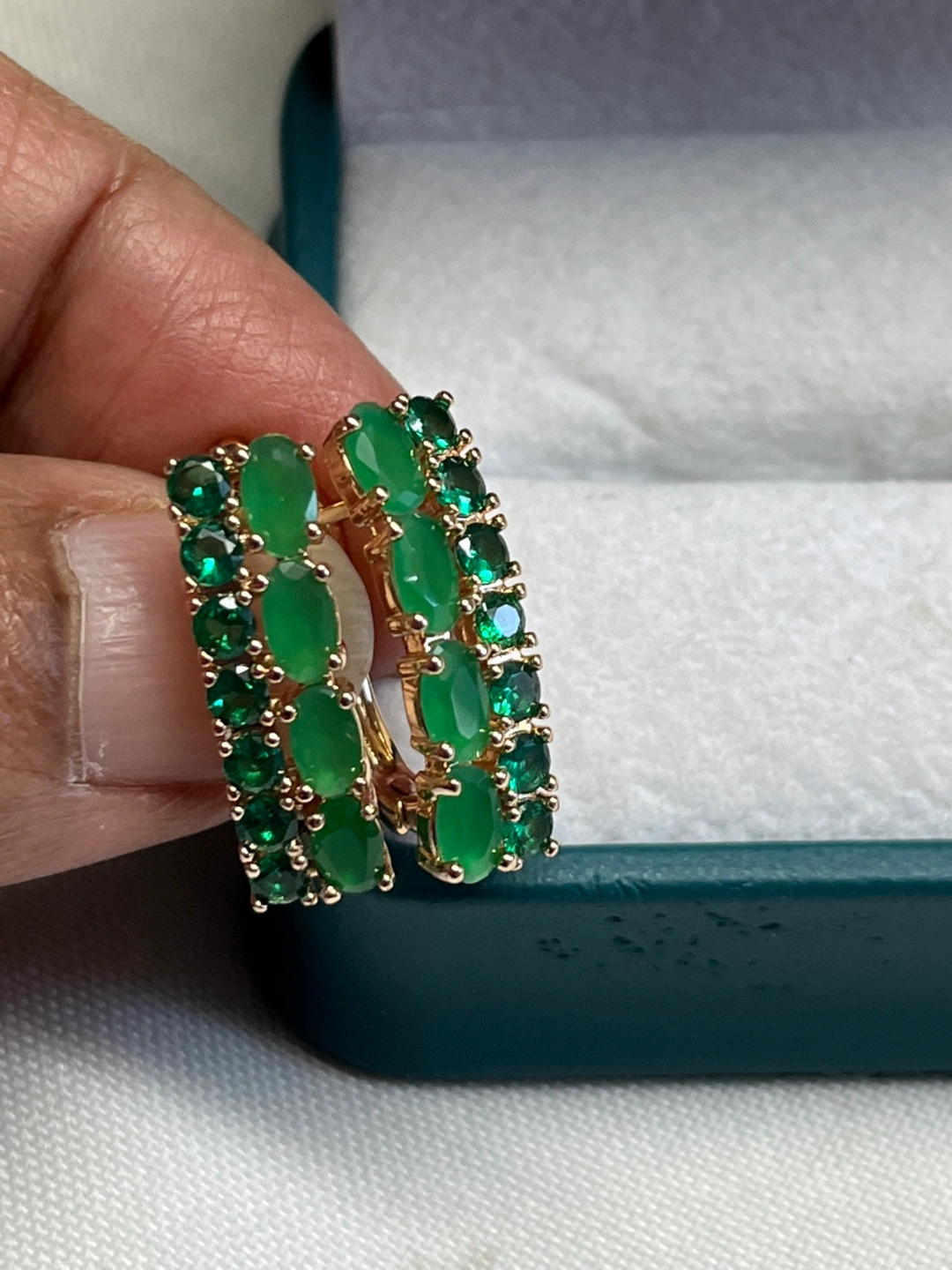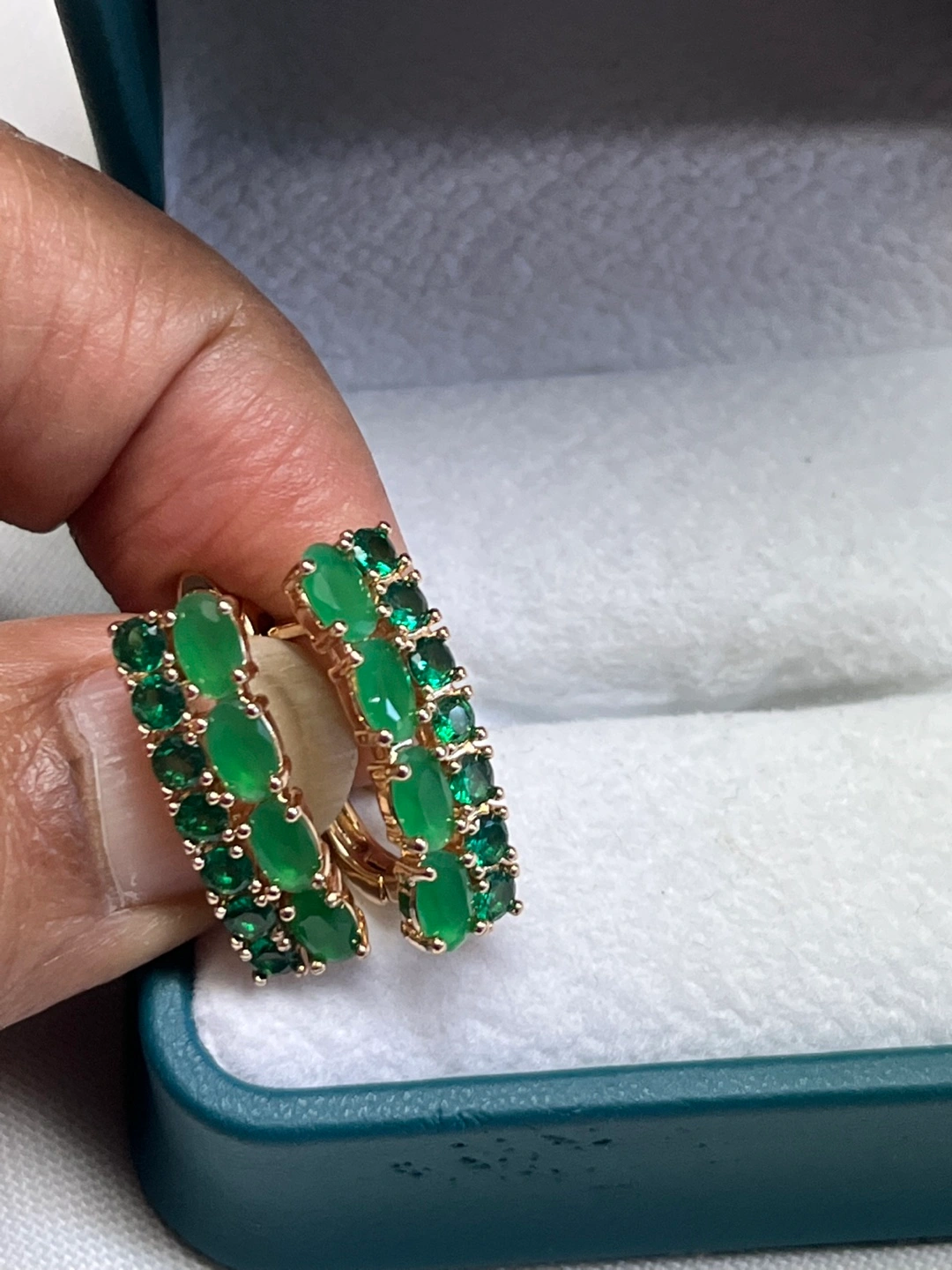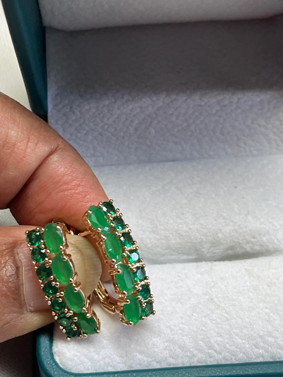 14k stimulated jade oval stone earrings Pick up and shipping available No delivery Shipping available for an extra $5