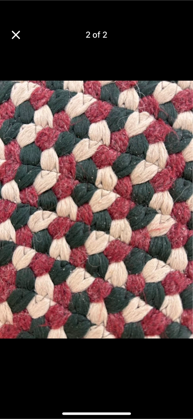Braided Oval Rug 60 1/4 inches long 36 inches wide No stains or pulling Only been in a seniors’ home Asking $20 Comes from a smoke free, cat friendly home