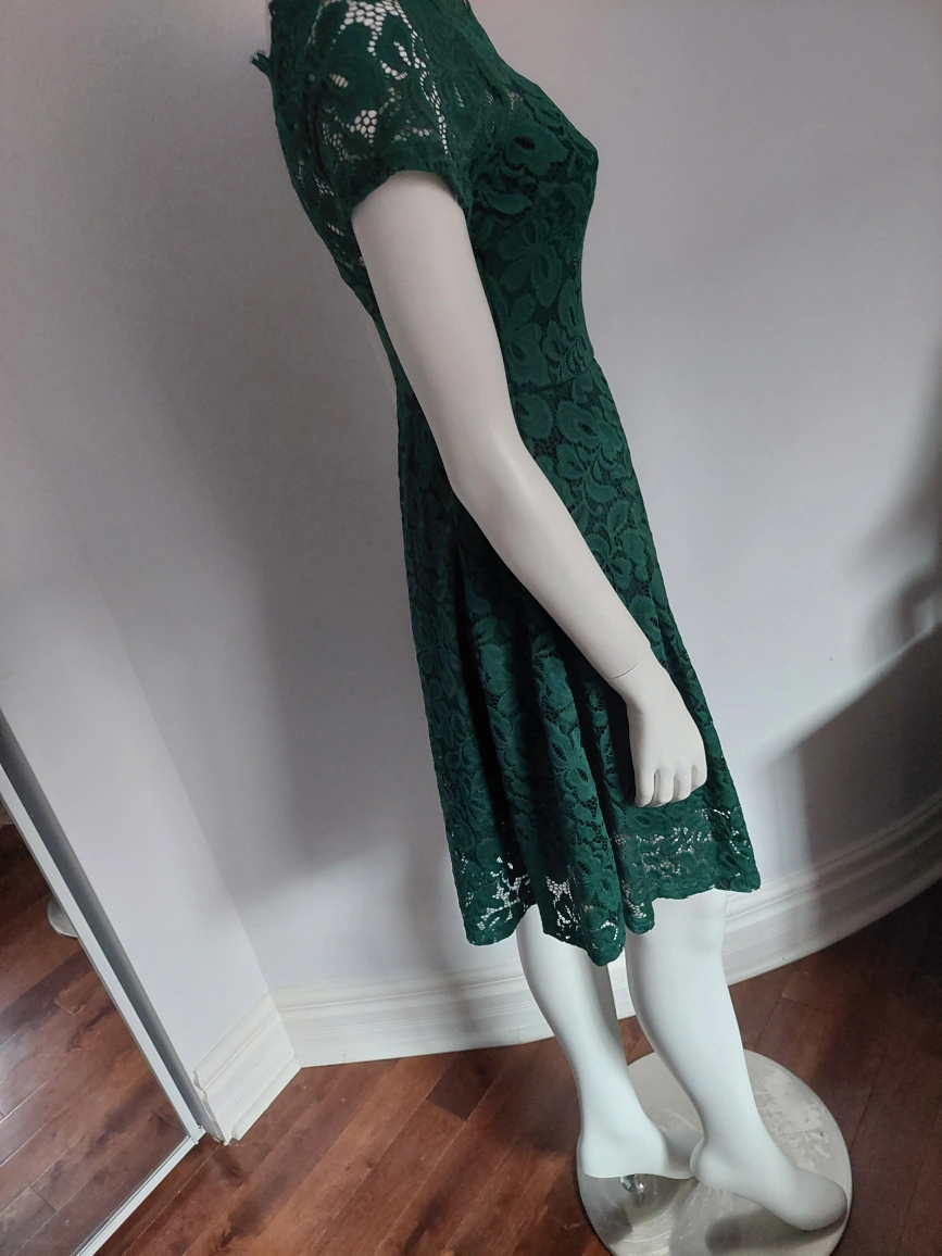 Beautiful emerald green lace dress, perfect for a special occasion! The dress features a delicate lace overlay with a fitted bodice and a flattering A-line skirt. Add to bundling for an additional discount. Thank you for visiting my listings 🤝☺️