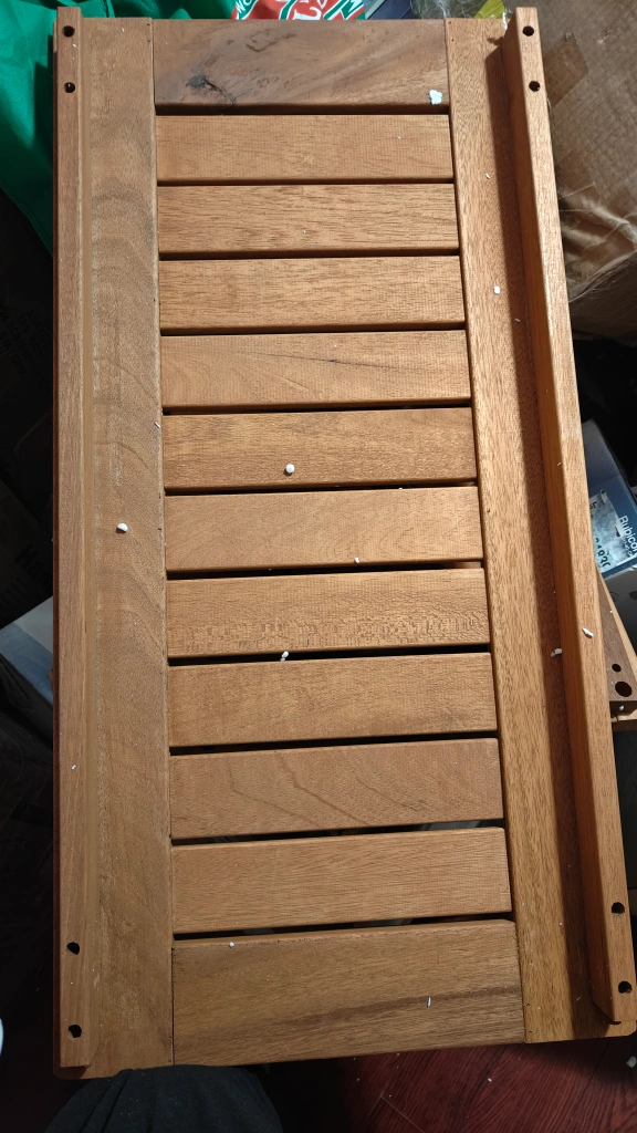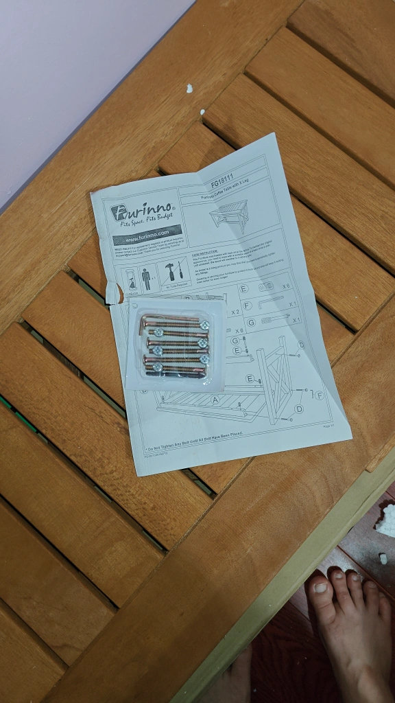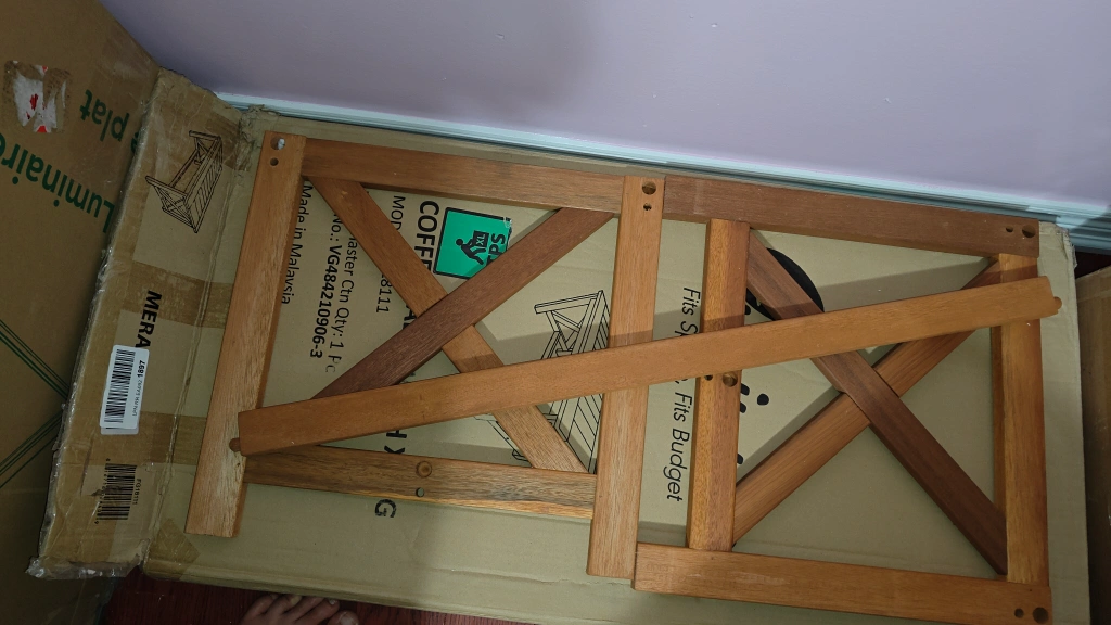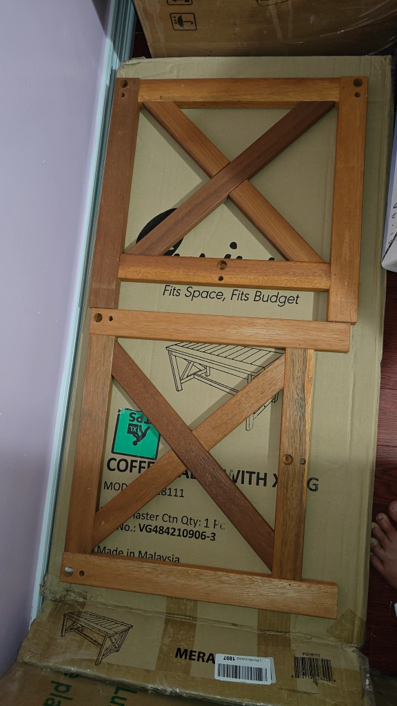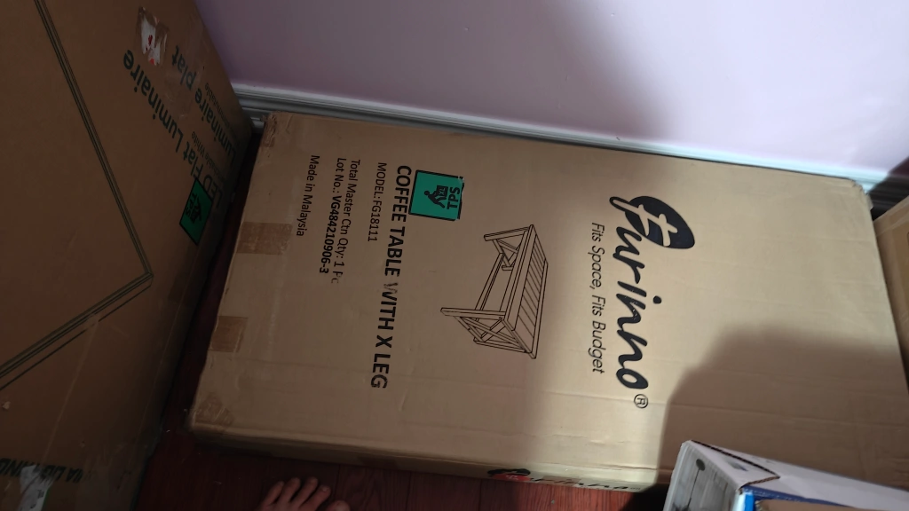 Selling a Furinno FG18111 coffee table. It's brown and measures approximately 35.4" x 17.8" x 17". Assembly instructions and hardware are included! please note it's a new item, never used never assembled but got minor damage.( refer pics) it's below side of the table so it doesn't show or affect it's functionality.