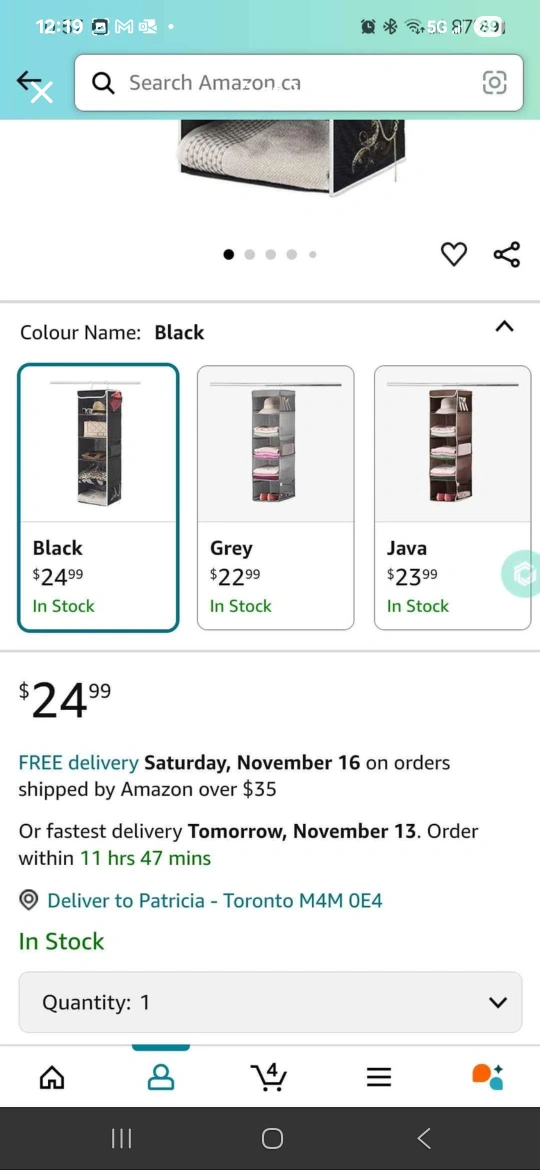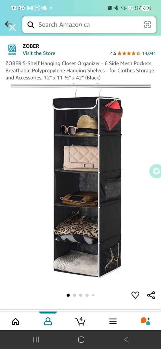 I have 3 available Pickup available near Queen St E & Logan Ave, or Yonge & Sheppard. Can deliver. Declutter your closet with this ZOBER 5-Shelf Hanging Closet Organizer! It features 6 side mesh pockets and breathable polypropylene hanging shelves. Perfect for storing clothes and accessories. Dimensions are 12" x 11 1/2" x 42". Colour is black
