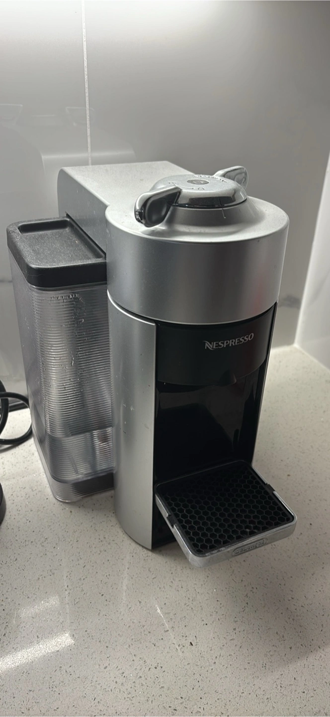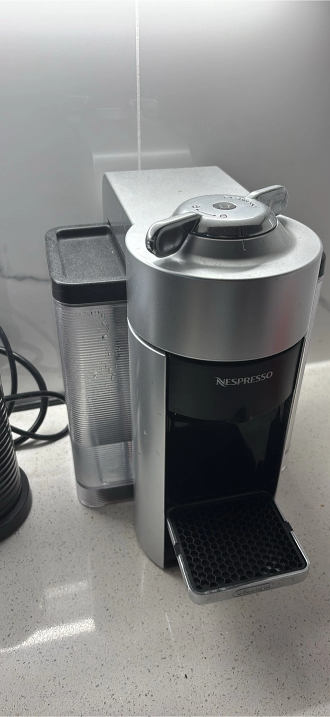Selling a Nespresso coffee machine in silver. It's in great condition and ready to make some delicious coffee! Perfect for a quick espresso in the morning or any time you need a little pick-me-up