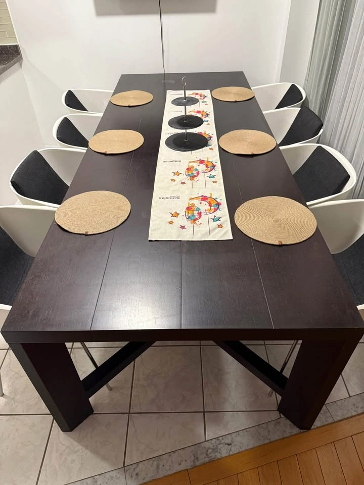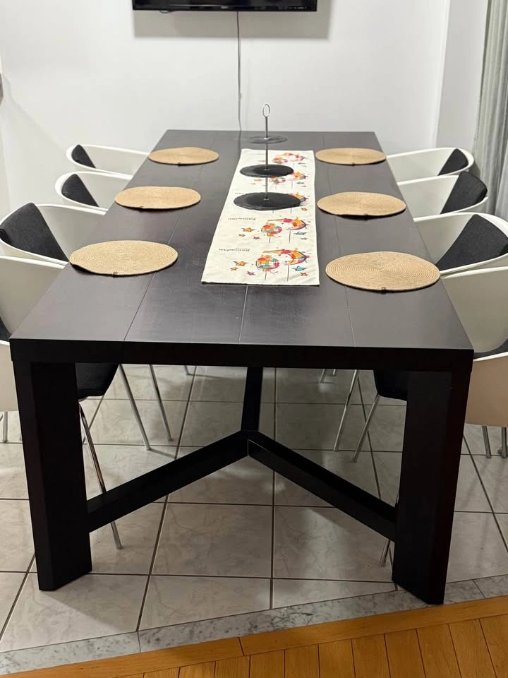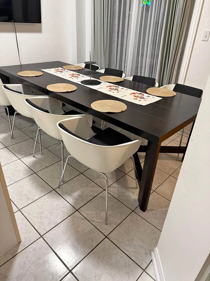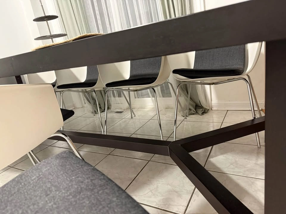 Elegant and durable Italian dining set for sale! 8 chairs – Very strong and heavy, in good condition. Removable & washable chair cushions for easy maintenance. Large dining table – Easy to disassemble. Measurements: 270cm (L) x 108cm (W) x 74cm (H) Pet-free, smoke-free home. Selling because it doesn’t fit our dining room. Chairs with cushion each is: 70$ Pick up in Richmond Hill (Bayview & Major Mackenzie)