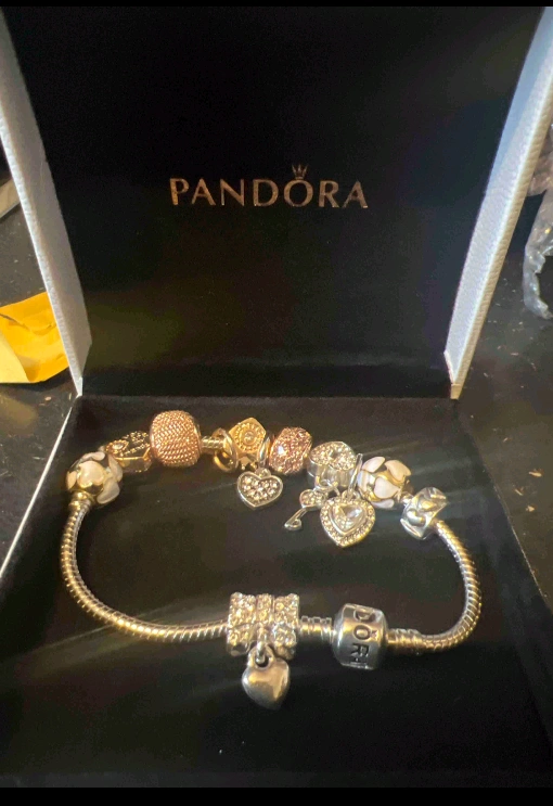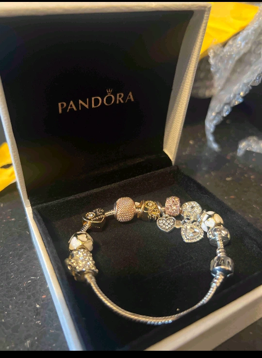 Selling a beautiful Pandora bracelet with various charms. It comes with its original box! Perfect for adding a touch of sparkle to any outfit. The bracelet is in great condition and ready for a new home