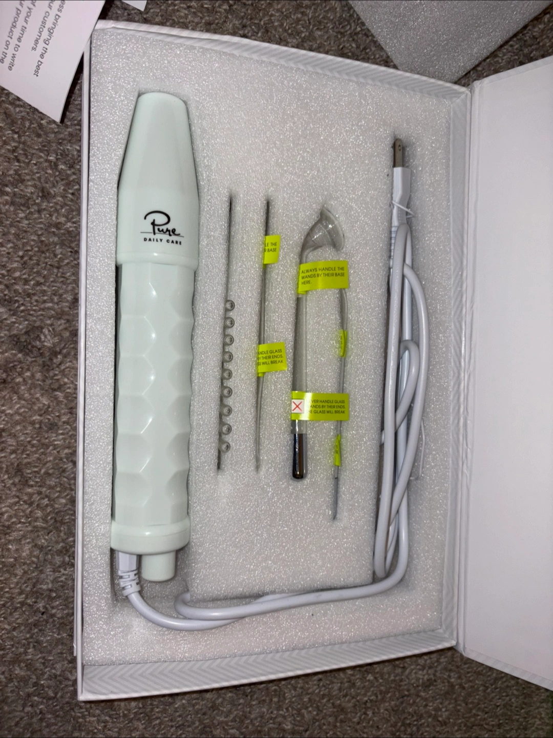 I'm selling a brand new Pure Daily Care NuDerma Skin Therapy Wand! This wand comes with 4 NEON applicators to boost glow and radiance, promoting a flawless complexion. It's a natural dermal cell energy amplification system that boosts cell metabolism by amplifying ATP production. It also helps create more youthful skin cells through increased energy production and blood circulation. The box is included!
