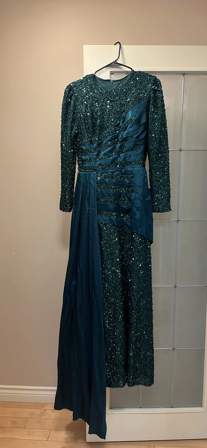 Beautiful emerald green evening gown with sequins. It's in great condition and perfect for a special occasion!