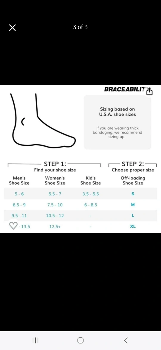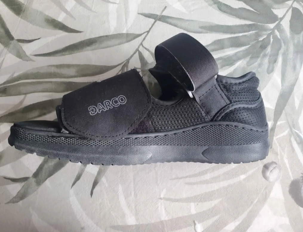 Selling a Darco MedSurg shoe in black. Based on the sizing chart, a Medium fits women's shoe sizes 6.5-9. Great if you need a post-op shoe!
