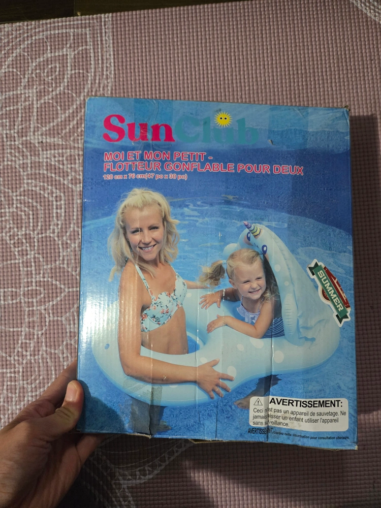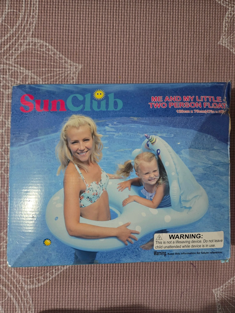 Selling a SunClub 'Me and My Little Two Person Float'. It's 120 cm x 75 cm (47 po x 30 po). Perfect for some summer fun in the pool!