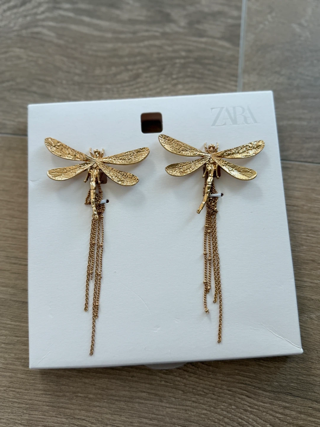 Gorgeous gold dragonfly dangle earrings from Zara! They feature a delicate chain detail and are in excellent condition. Size medium. DT queen st pickup only