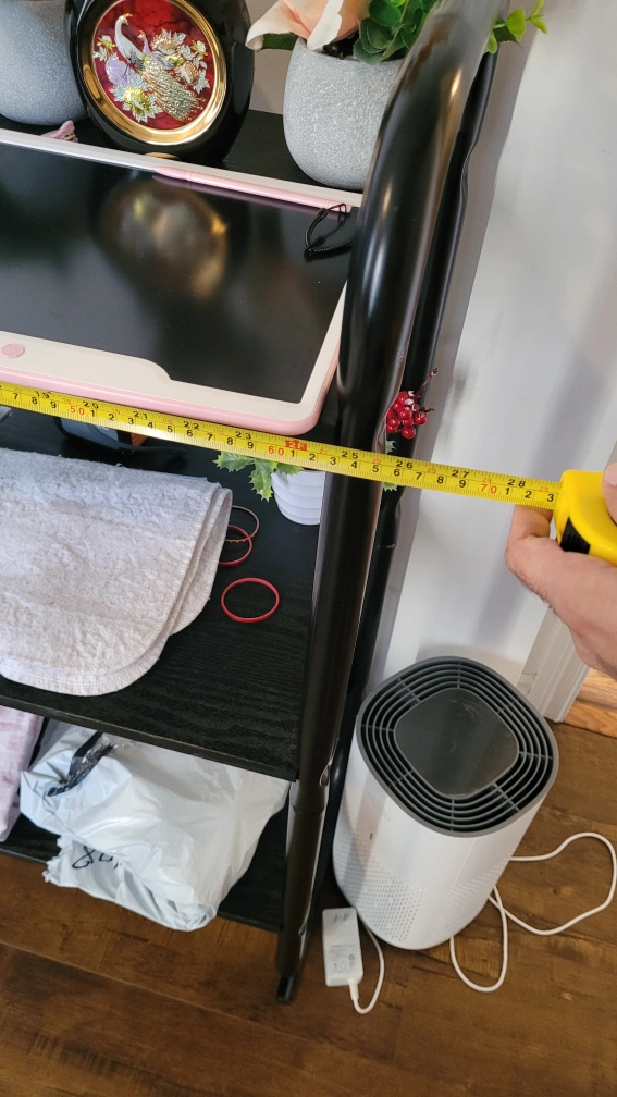 I'm selling a black 3-tier shelf unit. It's in great condition and ready to add some storage and style to your space! It measures approximately 47 inches in height and 27 inches in width Check out my other listings in my profile! I can give you a good deal if you choose to buy multiple items. Thank you for your interest.