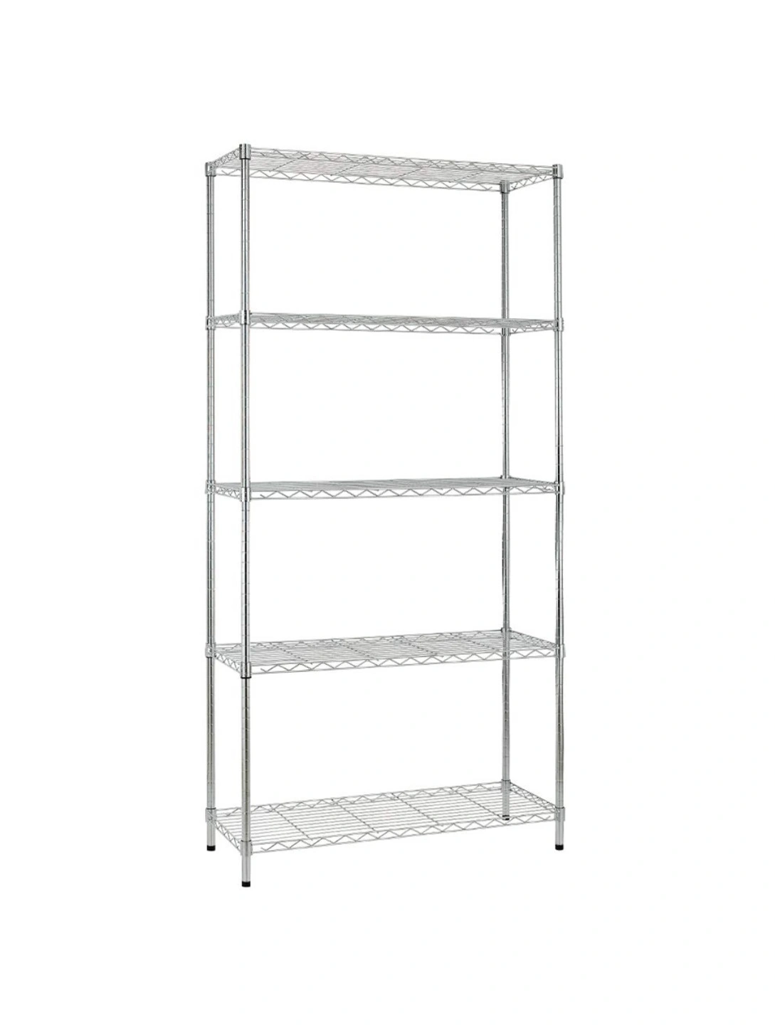 Selling a handy 5-tier metal wire shelving unit! It's perfect for adding extra storage to your kitchen or garage. Used temporarily in our kitchen for a short time period. No notable damage to the unit. - Shelf Type: Tiered Shelf - Mounting Type: Floor Mount - Room Type: Kitchen, Garage - Material: Alloy Steel, Chrome-plated The dimensions are 72" (height) x 36" (width) x 14" (depth) If this ad is up, it’s available. Pickup only. No delivery possible
