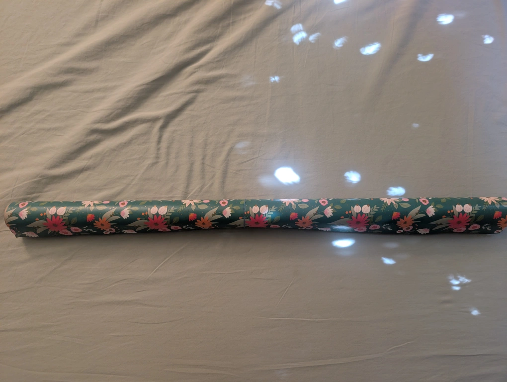 Here's a roll of wrapping paper with a pretty floral design! It's perfect for adding a special touch to your gifts. The colours are really vibrant and cheerful
