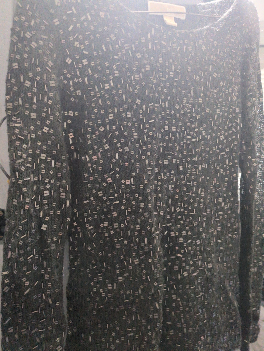 Cozy Michael Kors sweater up for grabs! It's a size small and features a unique beaded design throughout. Perfect for adding a touch of sparkle to your wardrobe!