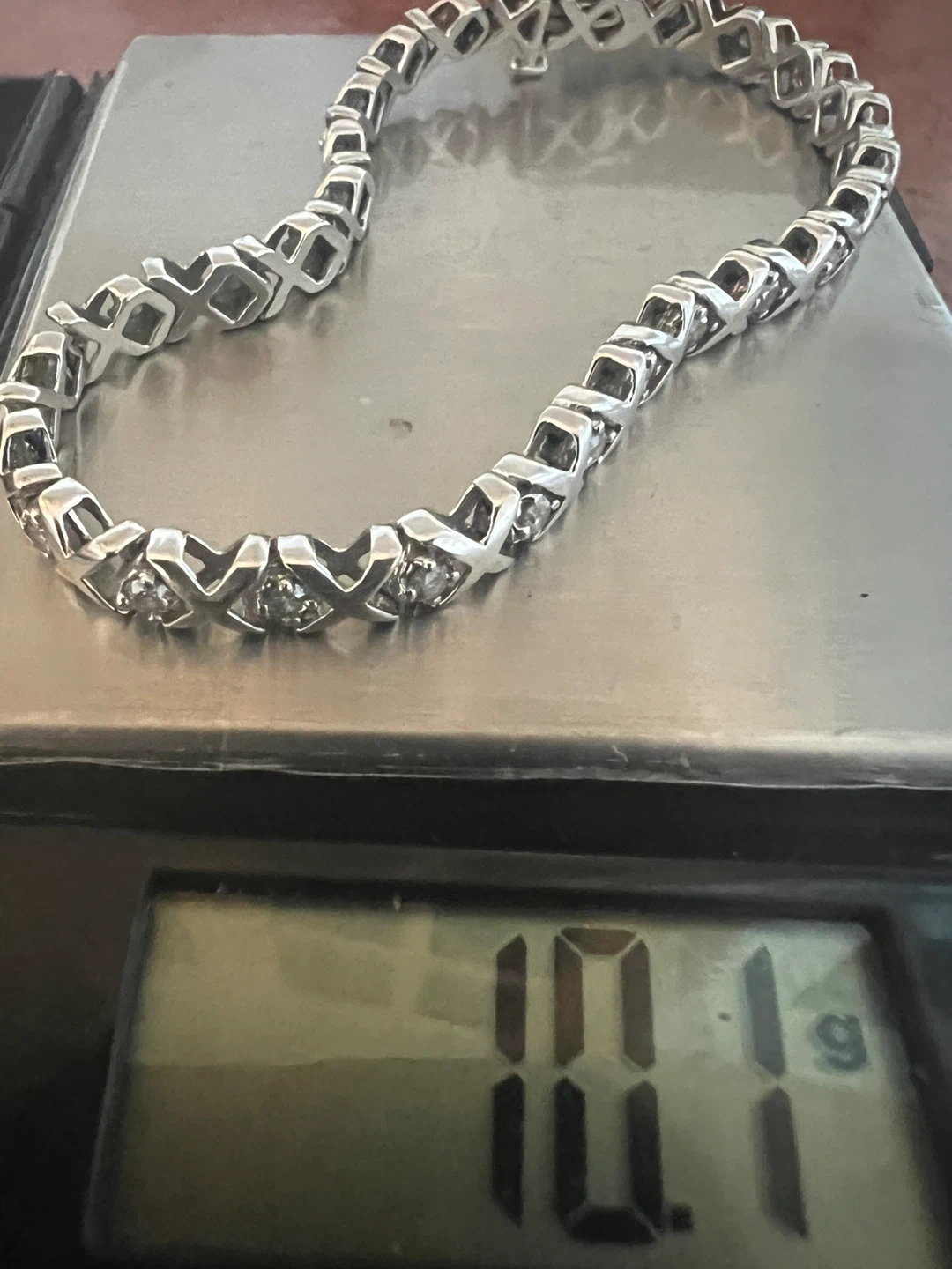 7.5 inches 10 k white gold Weight : 10.1 grams Natural diamonds 1.25 CTW