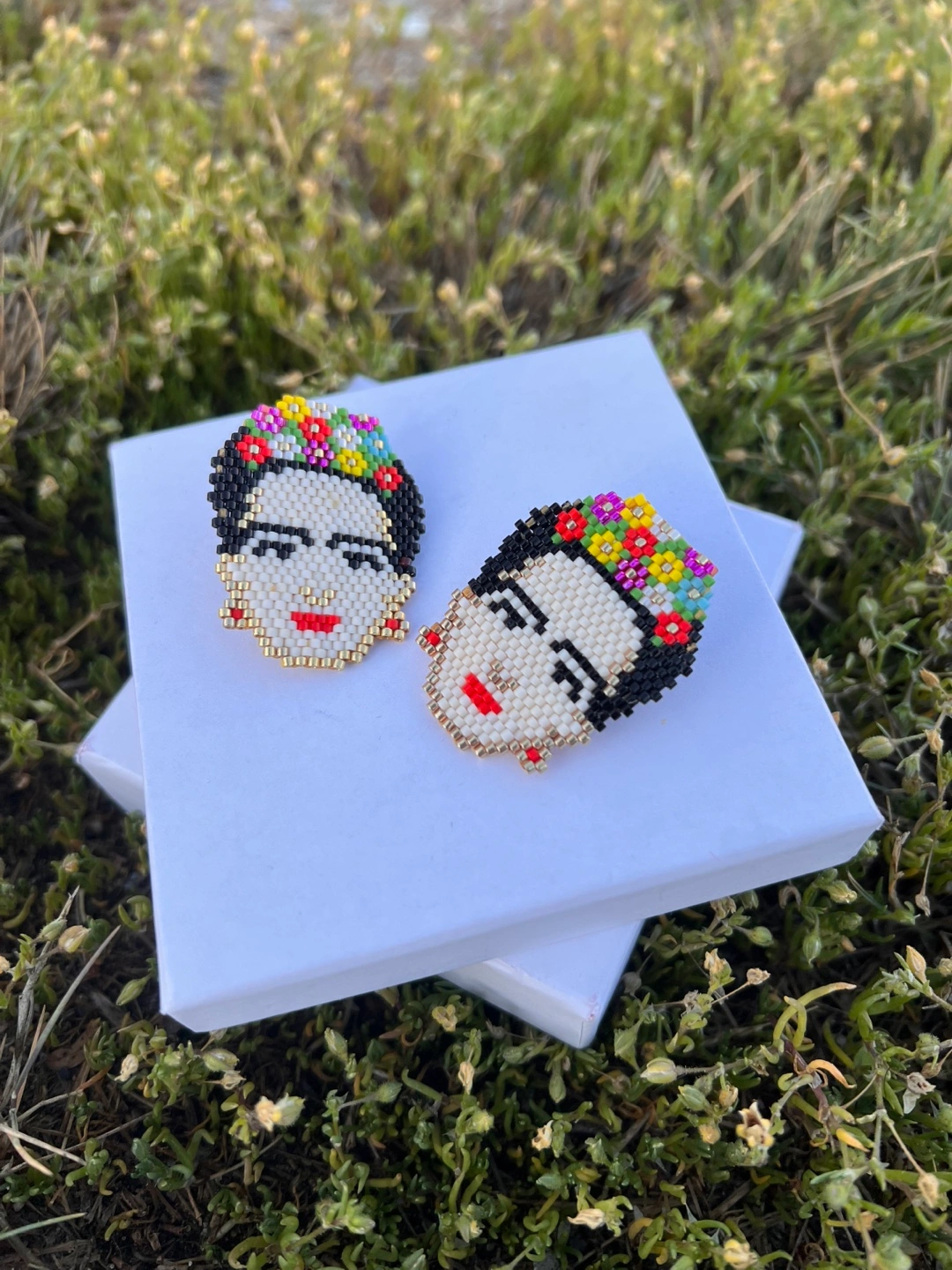 Unique handmade luxury and elegant Frida Kahlo Earrings! ✨ Made with colorful Miyuki Japanese beads ❤️, the design is vibrant and eye-catching, perfect for adding a pop of color to any outfit! Comes in a lovely white box, perfect for gifting or keeping it safe 🍃
