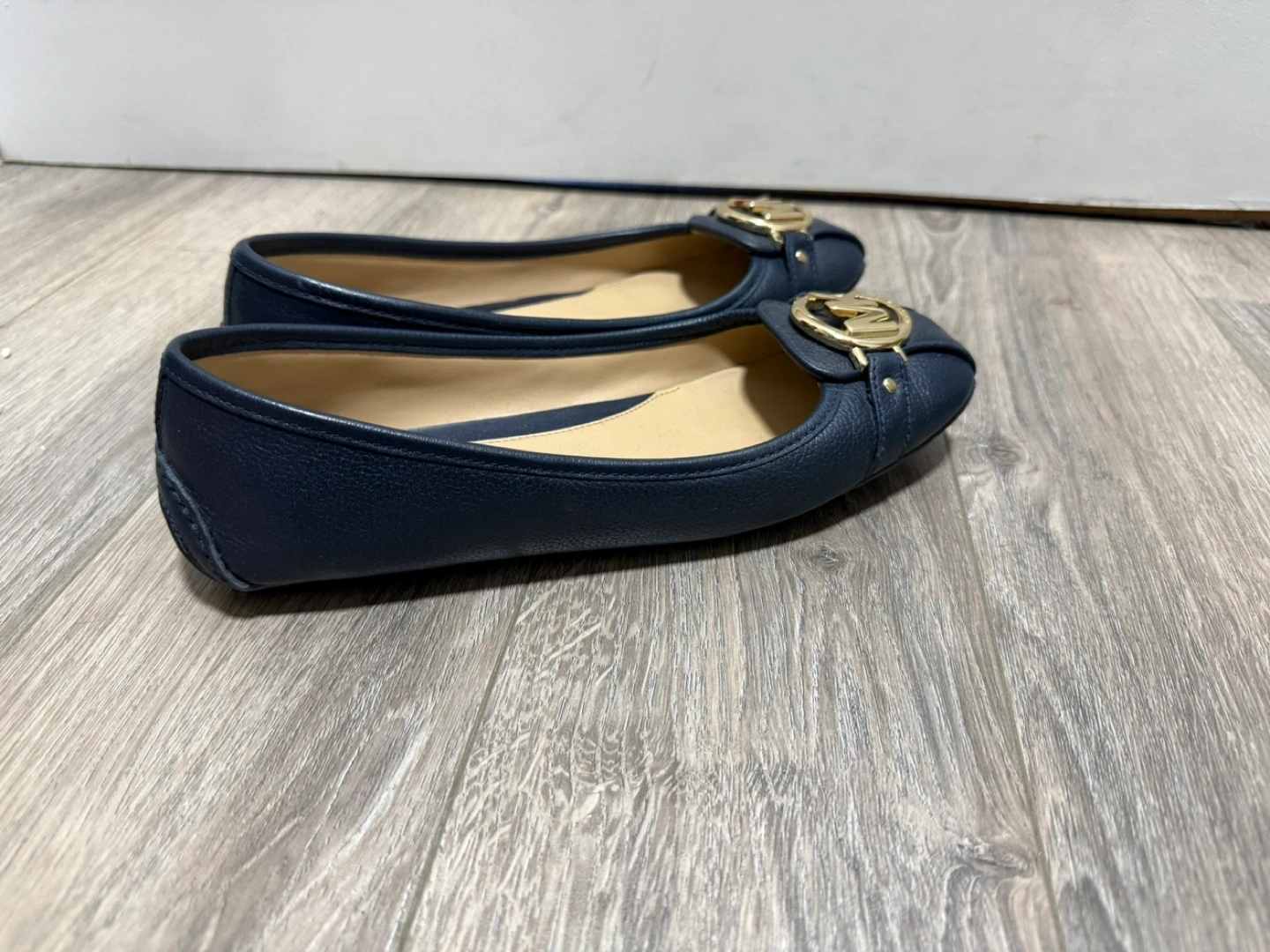 These Michael Kors ballet flats are a stylish addition to any wardrobe! They are a navy colour and size 6. The shoes feature the classic MK logo in gold hardware. Perfect for everyday wear or dressing up an outfit