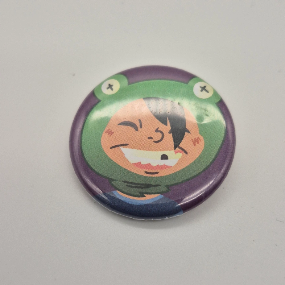 Here's a cute button badge featuring a smiling FrogBoy with a frog hat! It's in great condition and ready to add some fun to your bag or jacket. 1.5" wide. ____ PICK-UP ONLY Weekdays: 10-12 am OR 2 -10 pm Weekends/Holidays: 11am - 9 pm