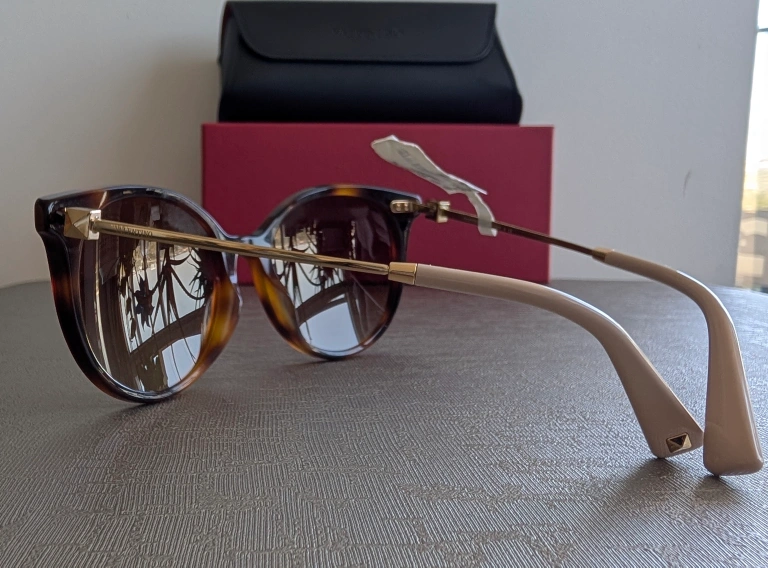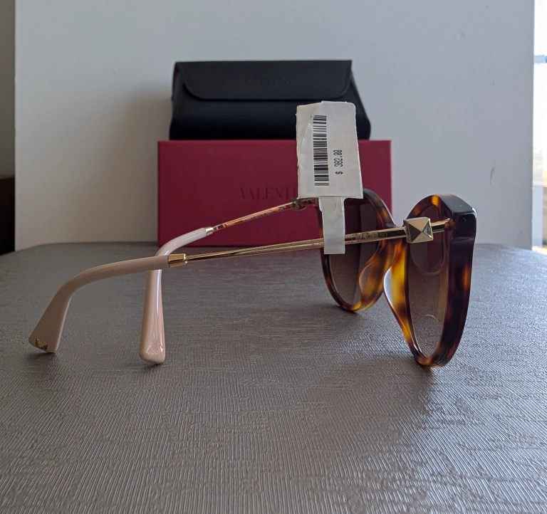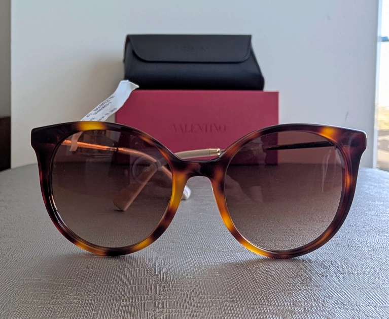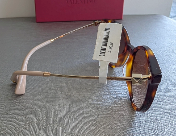 Elevate your style with these chic Valentino sunglasses. Featuring a classic tortoise shell design, they offer both elegance and UV protection. Perfect for any occasion. Comes with case and box, one arm of sunglasses has some adhesive from the price tag, can be removed with alcohol swab.