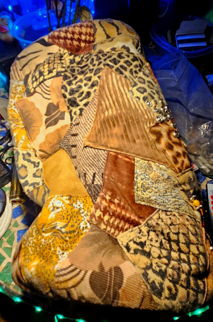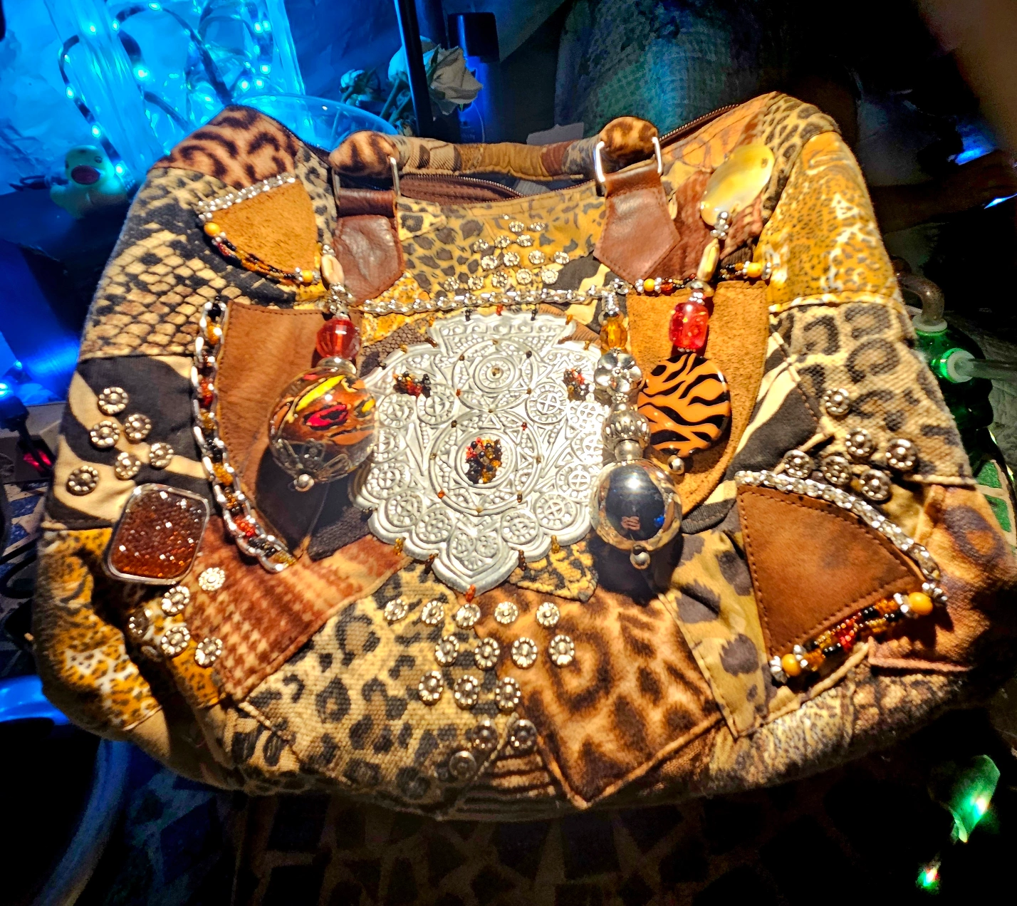 25Unique and eye-catching animal print patchwork shoulder bag! by fashion designer , Emily Campos. It features a variety of textures and patterns, with a sturdy handle and a spacious interior. Perfect for adding a bit of bohemian flair to any outfit!