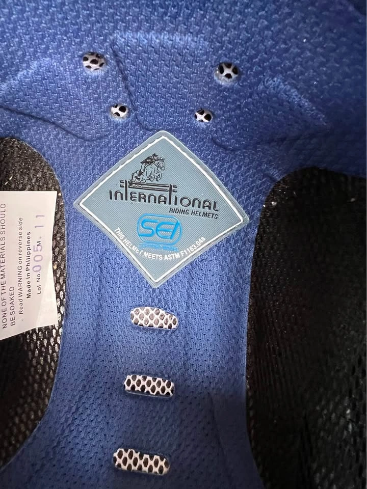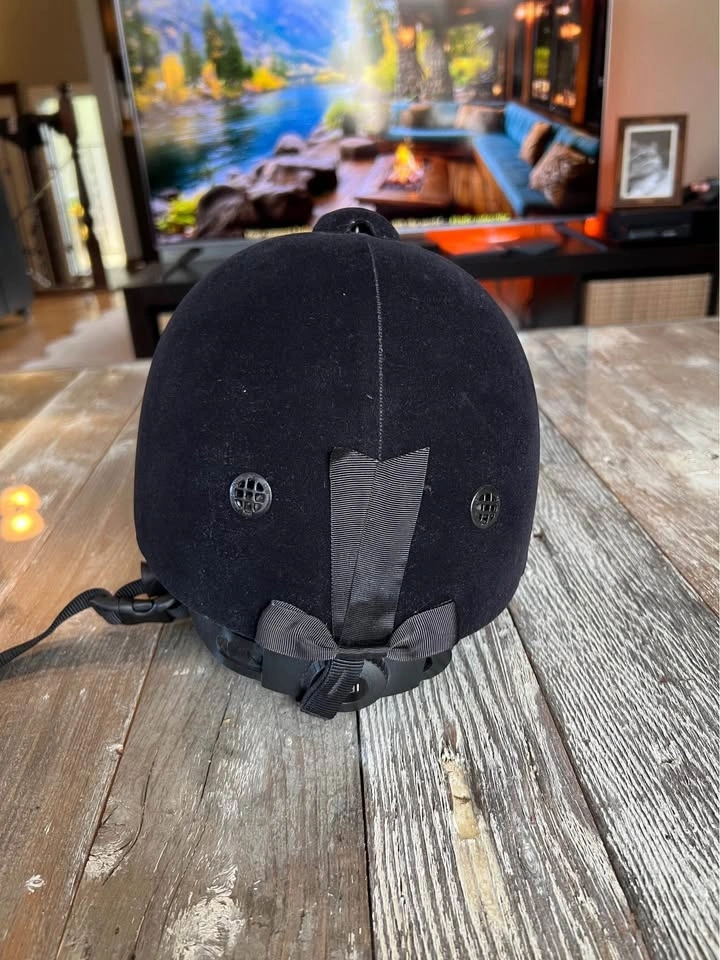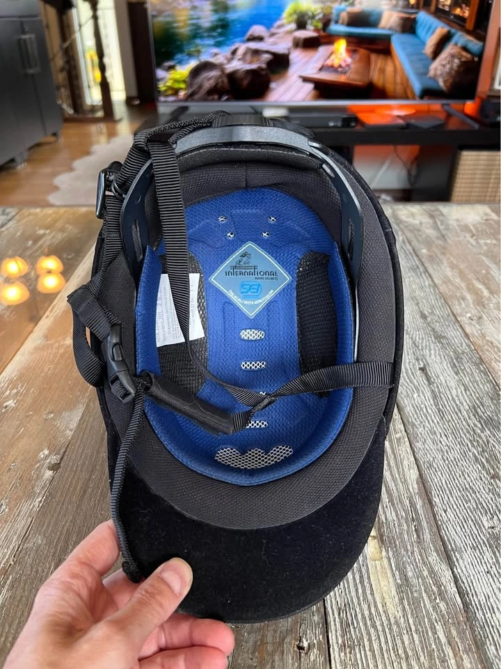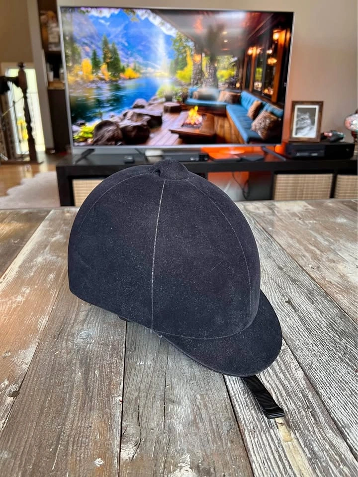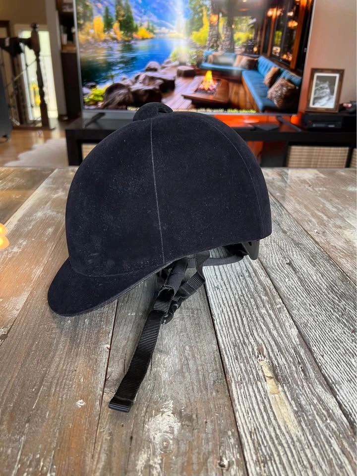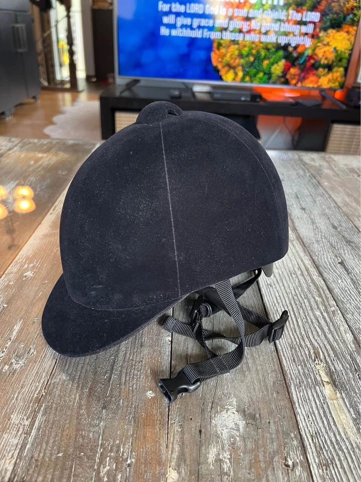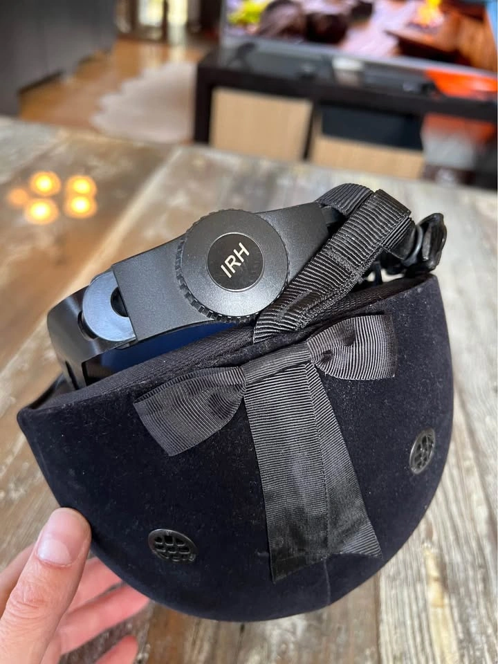 International Riding Helmets (IRH) classic velvet equestrian helmet. ASTM/SEI certified. Adjustable strap, comfortable lining. Good condition. $30 OBO. Small Child’s size, Chat GPT says 7, not sure where that’s coming from but it’s small, no signs of use new old stock I would say