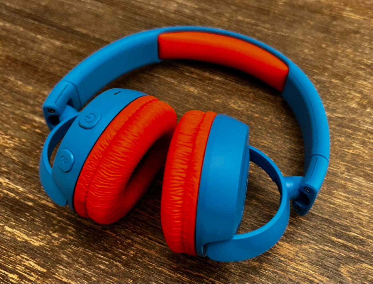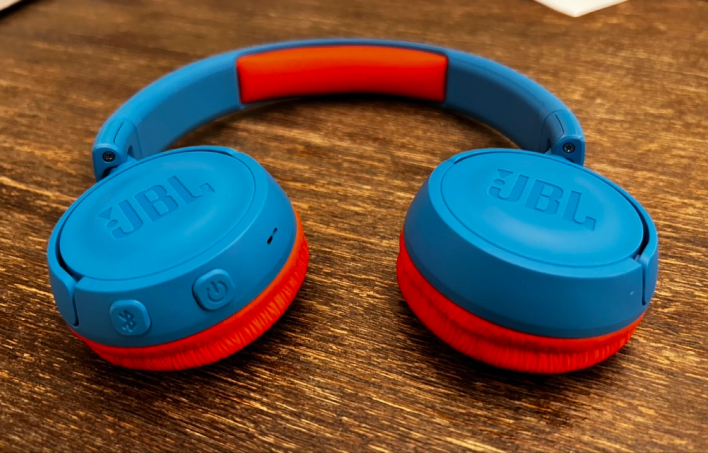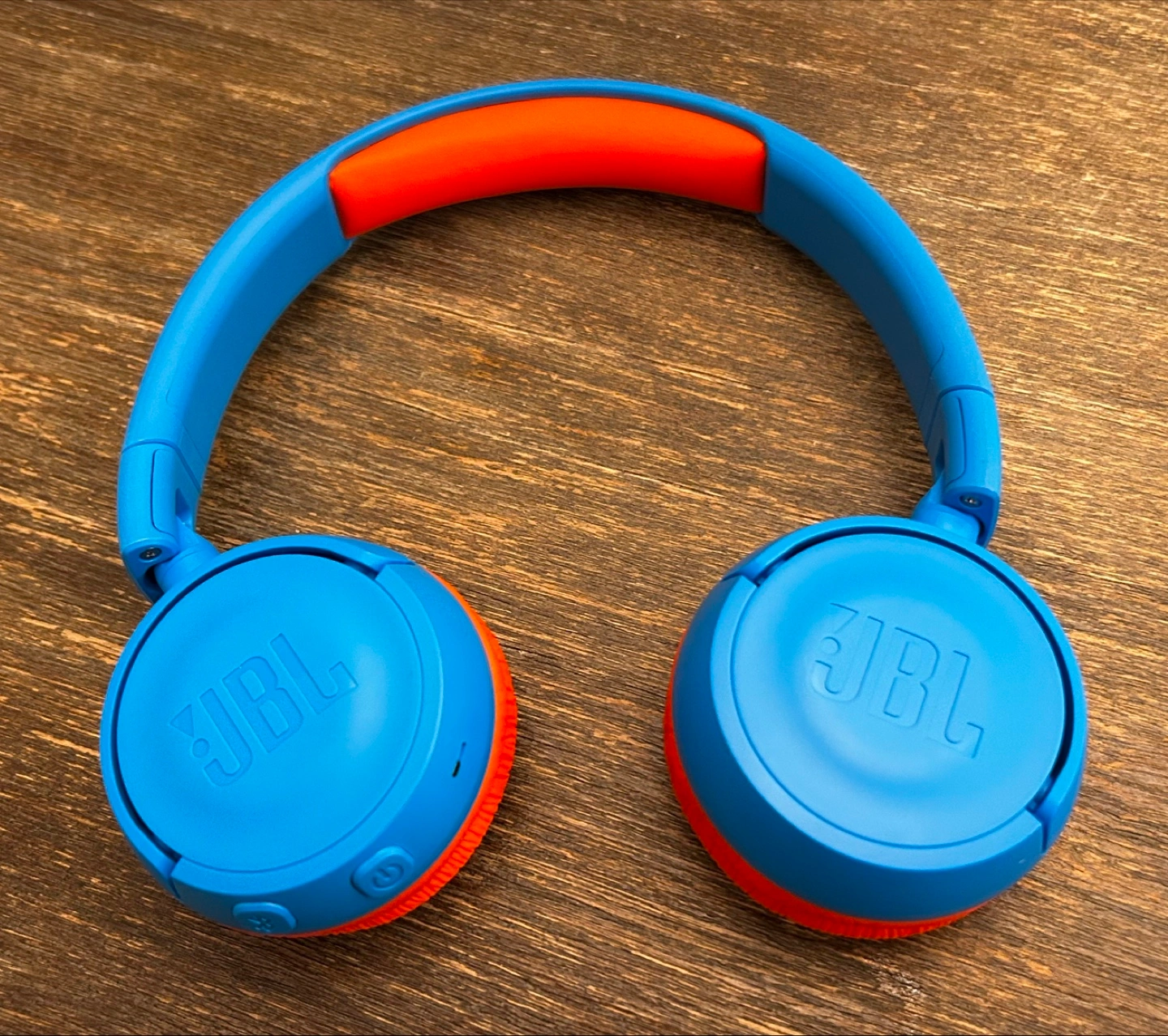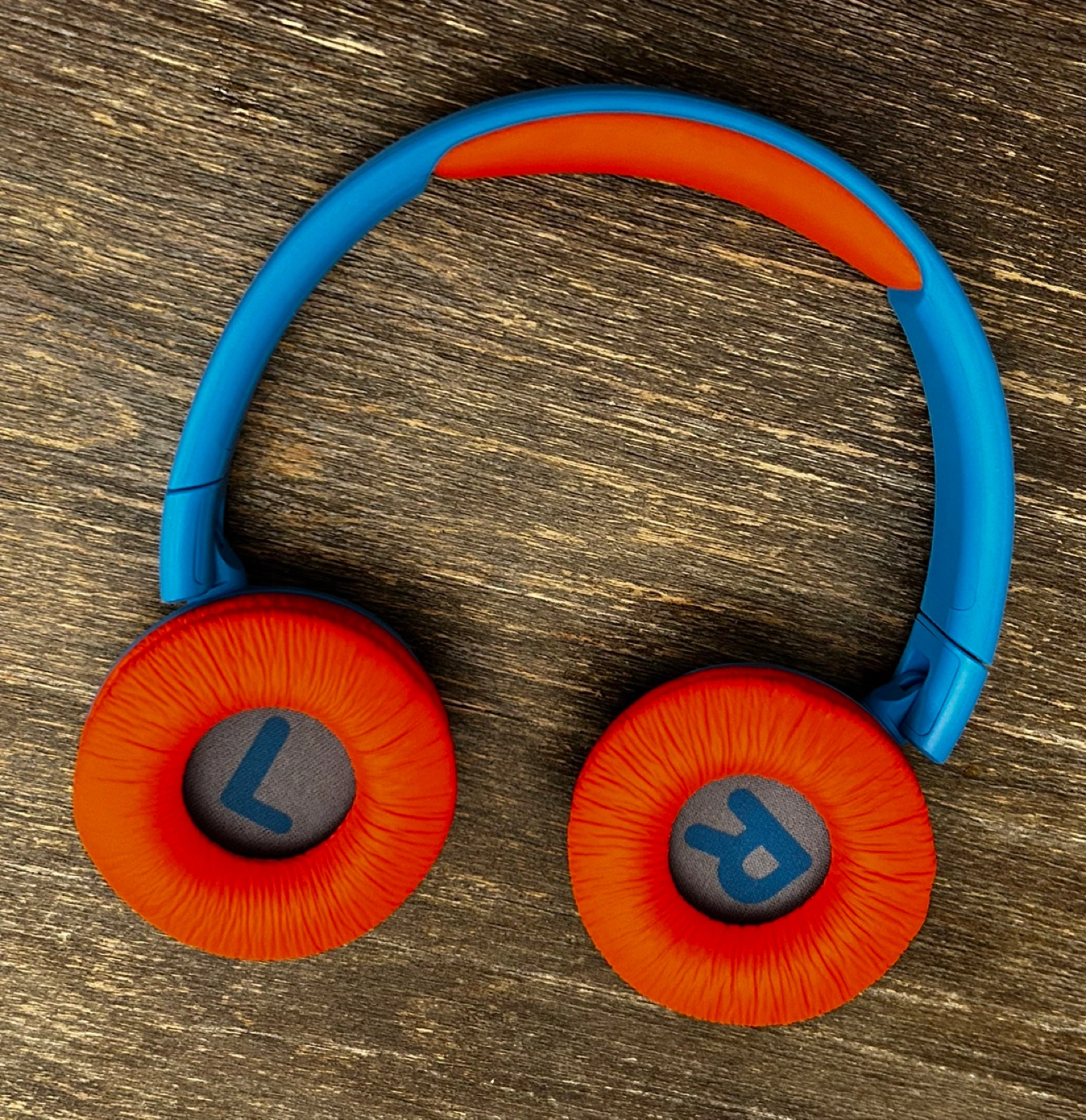 These JBL JR310BT wireless headphones are perfect for kids! They come in a fun blue and orange colour combo. They're in great condition and ready for a new home! The earcups have 'L' and 'R' indicators to help kids put them on correctly