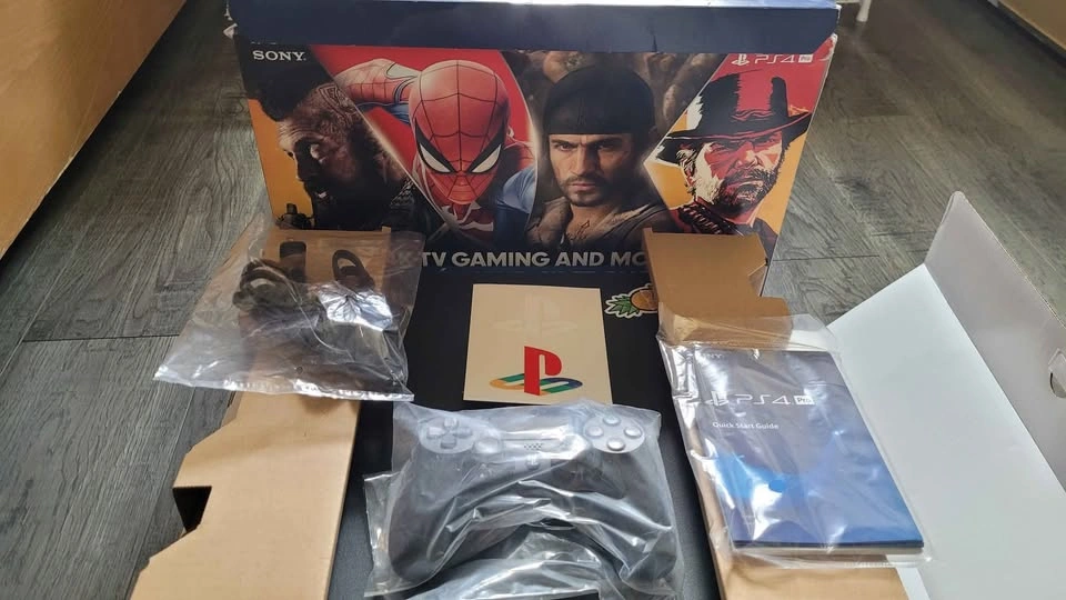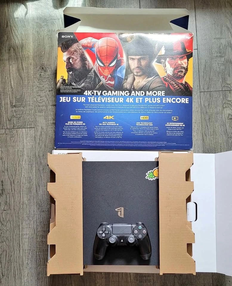 This is my PS4 Pro, I've used this console and everything is in good shape. Most of the things in this box are sealed and haven't been opened. This PS4 comes with a controller, a PS4 Pro manual, stickers, and cables (including power cable and controller charging cable). There is nothing wrong with this PS4 Pro, there are no signs of heavy damage. If you want games and extra controllers with it, let me know I can give you them for a good price.