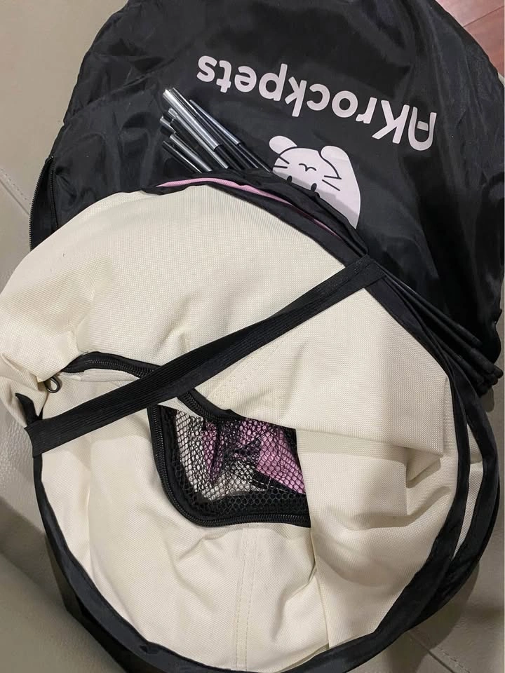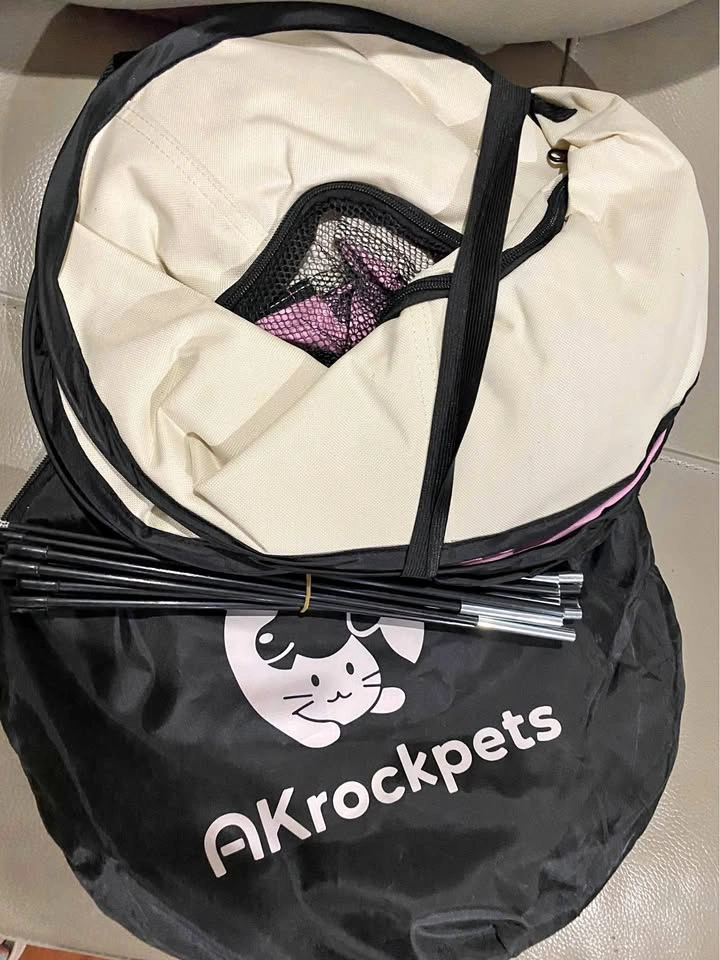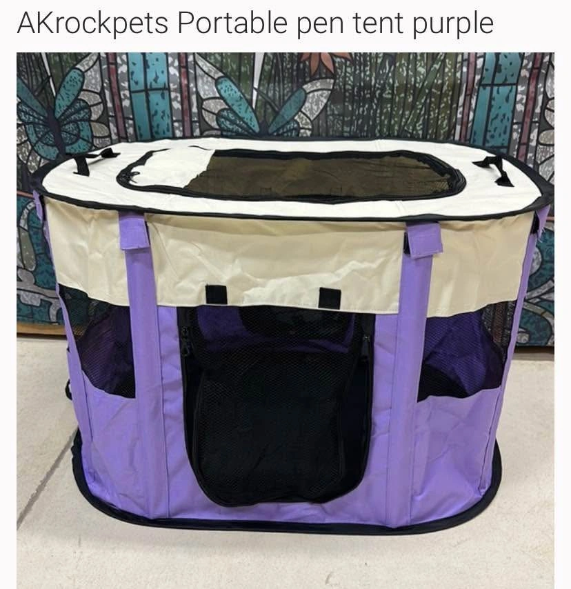 AKrockpets Portable & Sturdy Pet Playpen, Foldable Exercise Playpen Tent Kennel Crate for Dog, Cat. Great for indoors, outdoors, travel & Camping. One of the photos show a purple playpen but this item is pink. Just used the photo for visual. Size Medium 35.43" x 27.55" x 23.6" Location is Lawrence and Bellamy Cash only. Final Sale