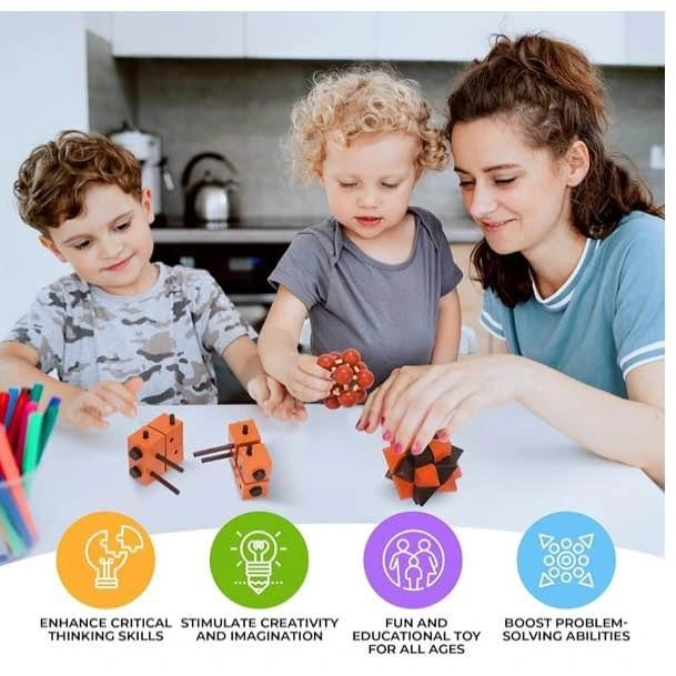 Puzzle Types (Luban Lock, Kongming Ball, Kongming Corners) Educational objective Memory Skill, Creative Thinking, Color Recognition